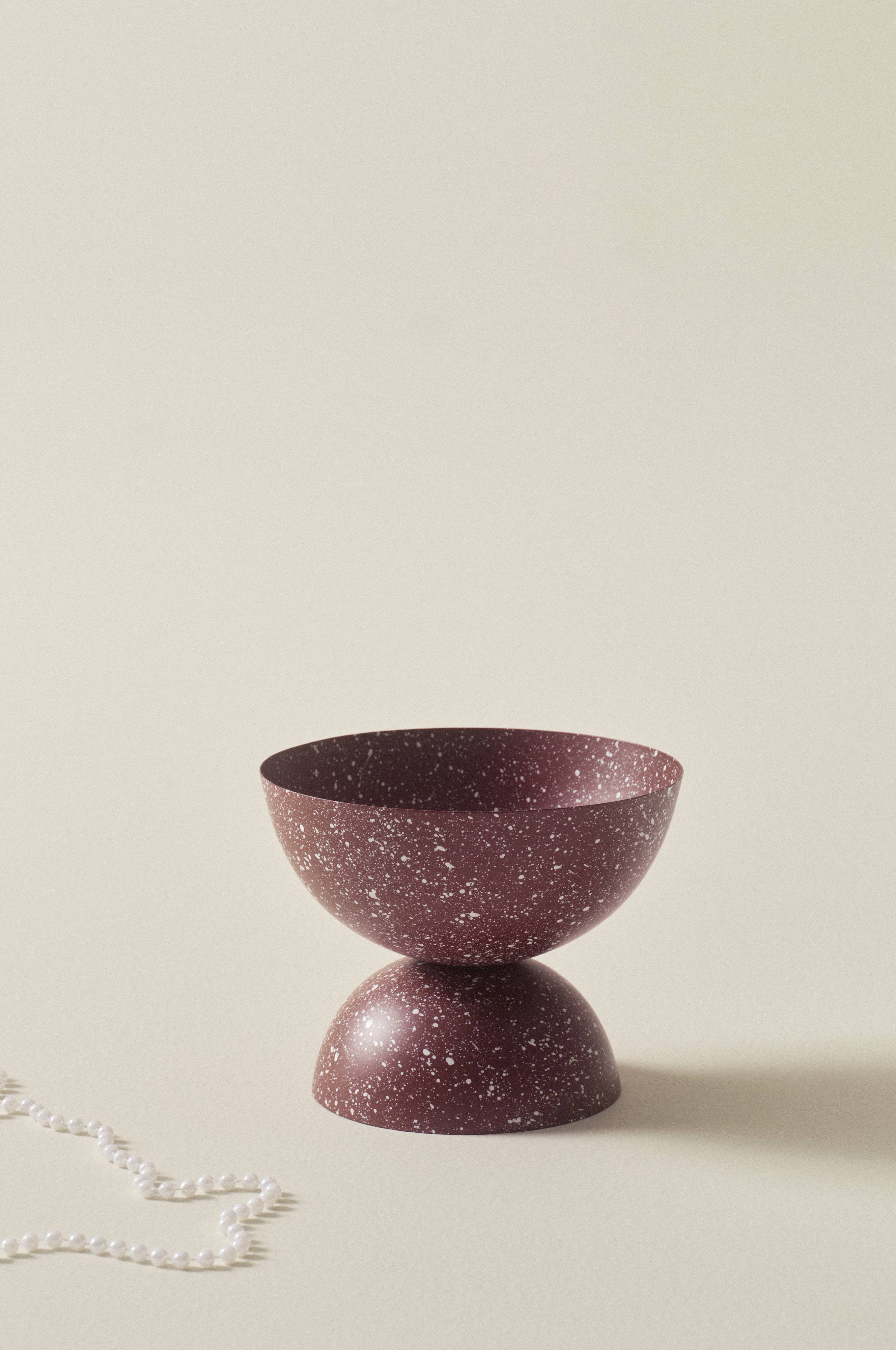 Dekorationsskål af jern med terrazzoinspireret maling. Skålens form og farve skaber et fint blikfang.