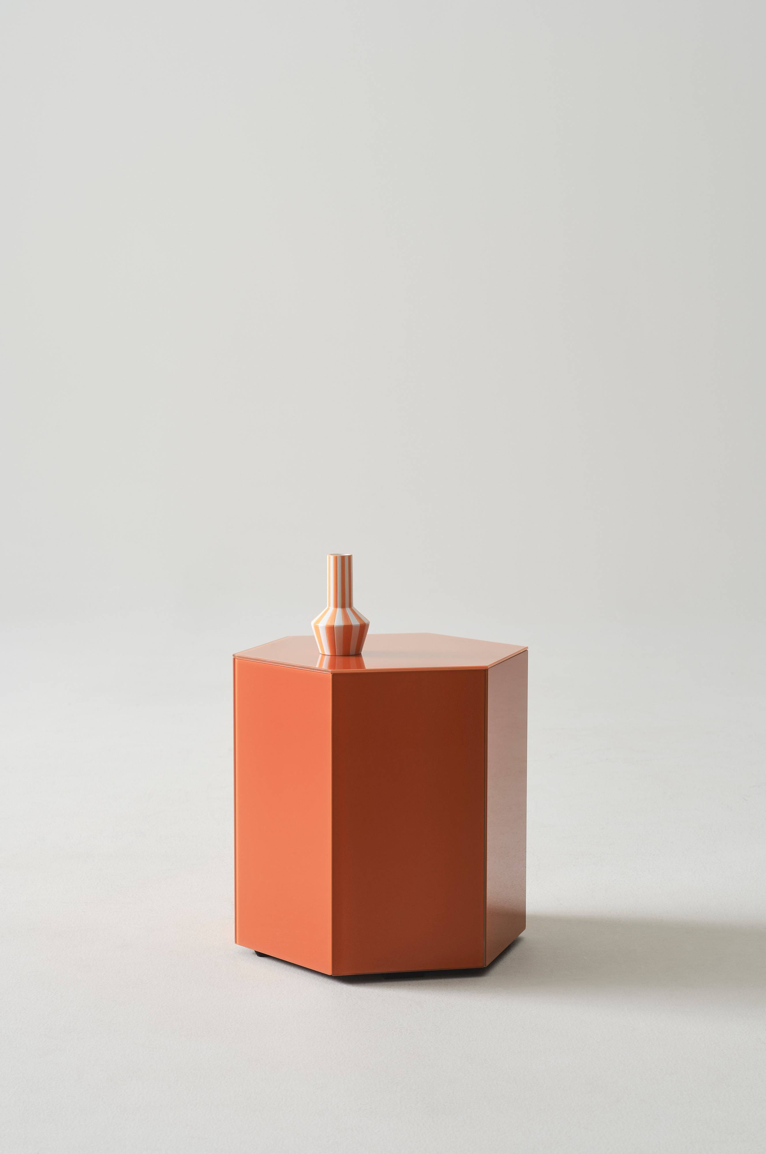 STARLITE er et sekskantet sidebord i moderne design til din stue. Bordpladen er af spejlglas, og stellet er af robust MDF. Dette alsidige møbel bliver en ungdommelig farveklat, der passer smukt i entreen eller som et trendy sengebord.