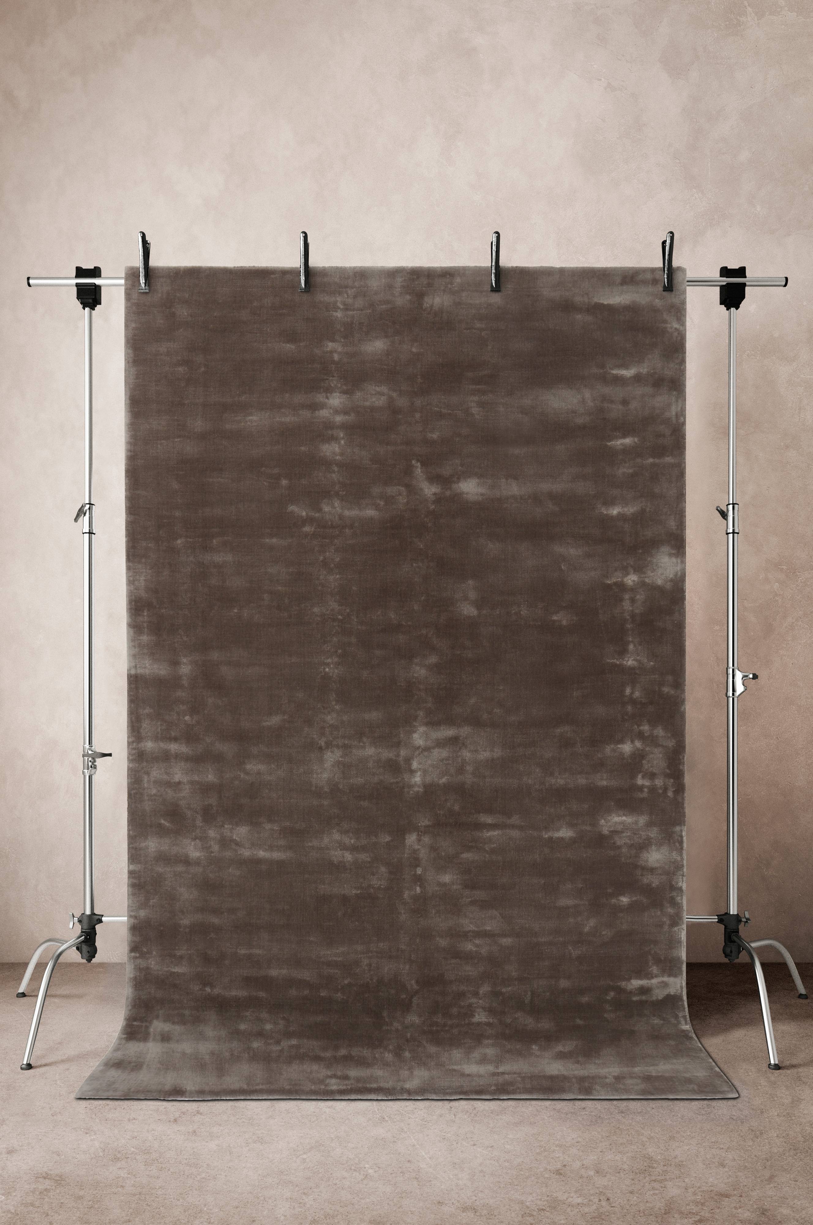 Håndvævet luvtæppe af lyocell. Tæppet har tæt, kort luv med smuk glans og det skinner i forskellige nuancer, når lyset falder på det. Det er ensfarvet, men samtidigt fuldt af liv. Luvhøjde 1 cm. Tykkelse 1,5 cm. 2300 g/m².