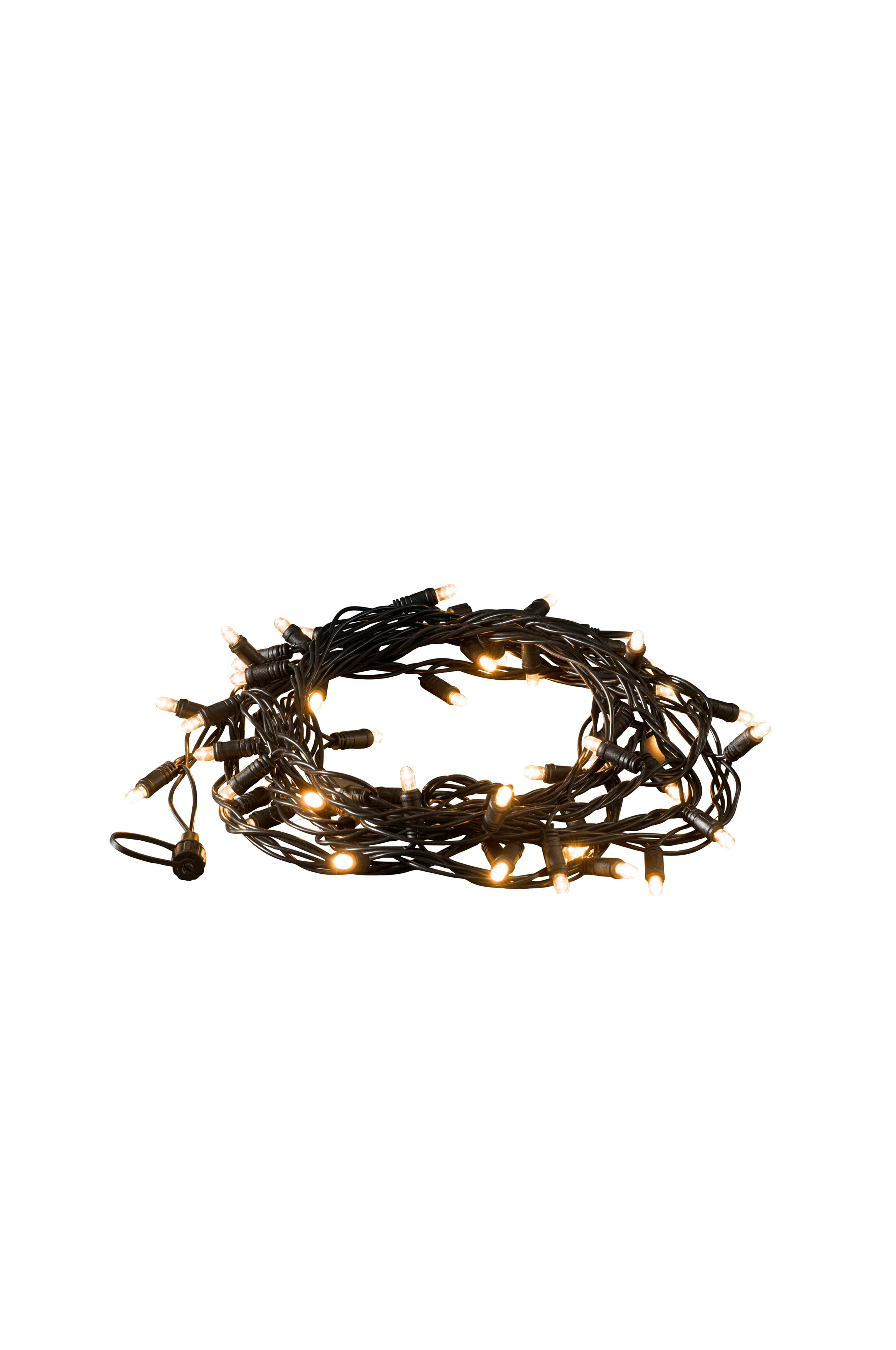 Ekstra lyskæde med 100 ravfarvede led til udendørs brug. Robust soft cable. Drives af en 31v transformator med indbygget dæmper. Tilslutningsledningen er 10,20 m. Systemet kan udvides til 1200 LED-lys eller 120 m
