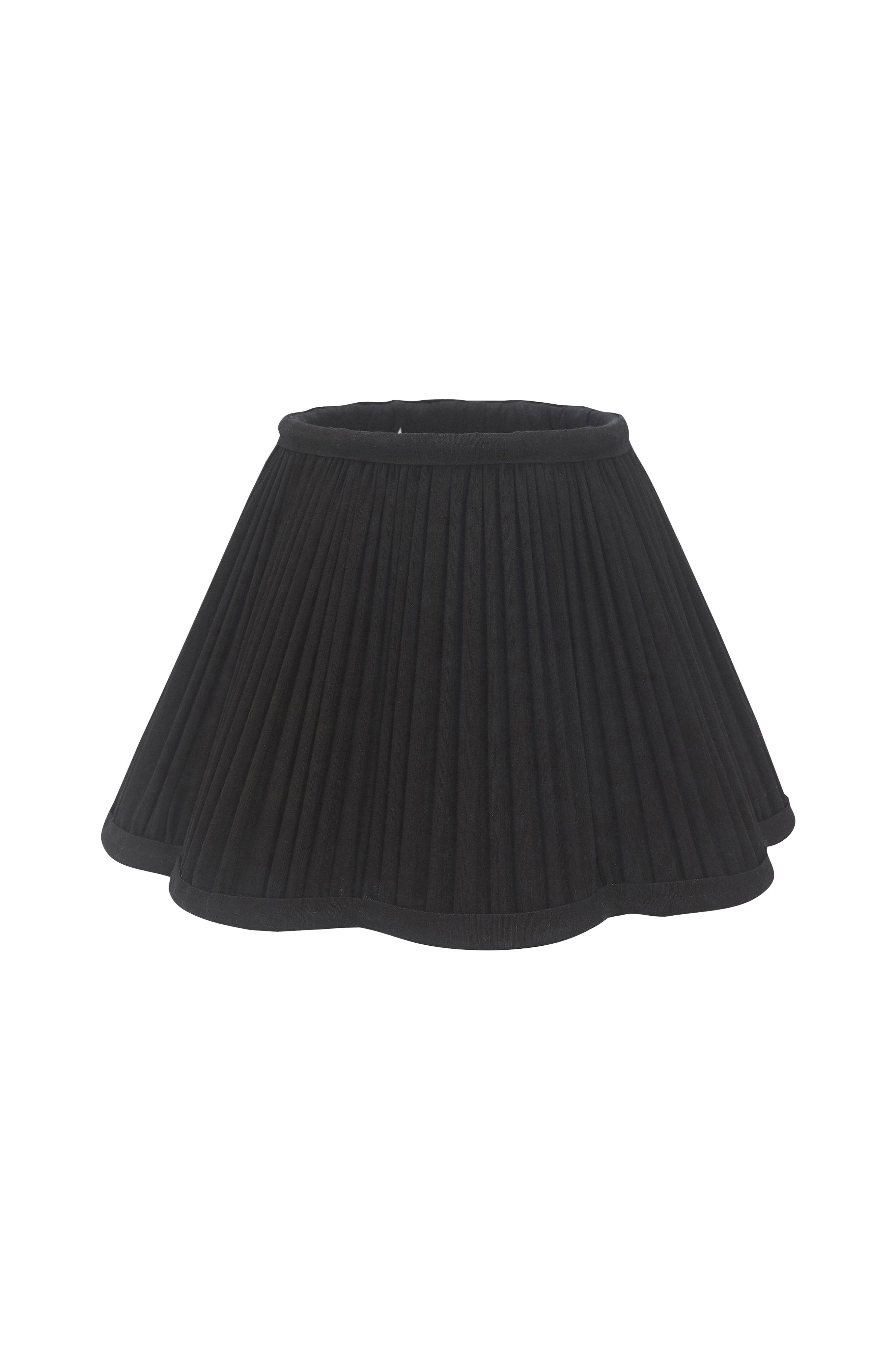Siv lampeskærm med rynket stof i silkelook og foret med bomuldsstof i samme farve. Skærmen har en bølget form forneden som skaber et flot lysflow. Lampeskærmen har en topbærering og kan bruge til gulvlampe med bøjelig arm, væglampe og bordlampe med bøjelig arm. Skærmen kan også kombineres med et loftophæng med E27-fatning og på den måde bruge den som pendel og loftlampe. E27-topbærering. Højde 17,5 cm, bredde forneden 30 cm, bredde foroven 14 cm.