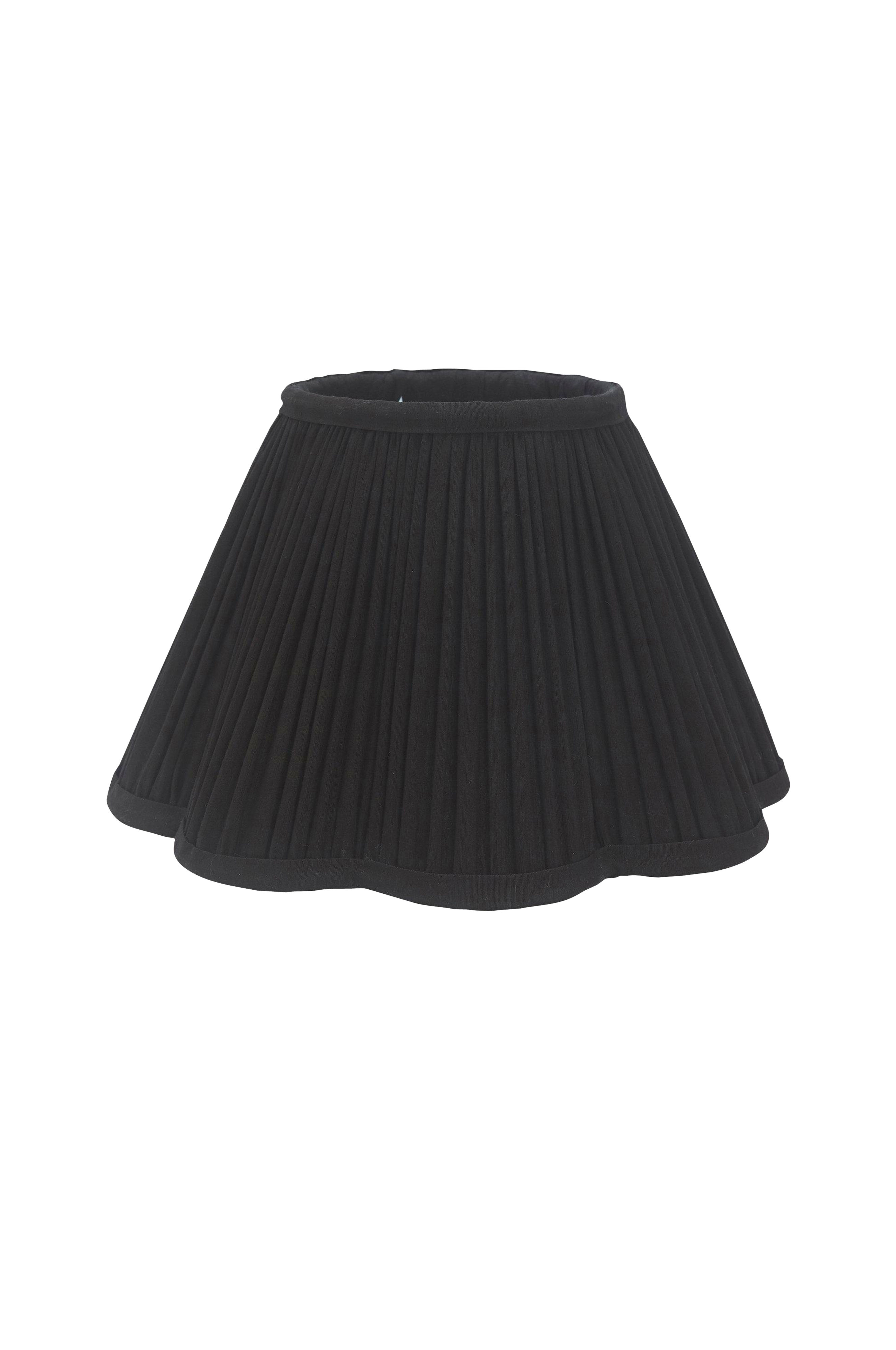 Siv lampeskærm med rynket stof i silkelook og foret med bomuldsstof i samme farve. Skærmen har en bølget form forneden som skaber et flot lysflow. Lampeskærmen har en topbærering og kan bruge til gulvlampe med bøjelig arm, væglampe og bordlampe med bøjelig arm. Skærmen kan også kombineres med et loftophæng med E27-fatning og på den måde bruge den som pendel og loftlampe. E27-topbærering. Højde 20 cm, bredde forneden 35 cm, bredde foroven 16 cm.
