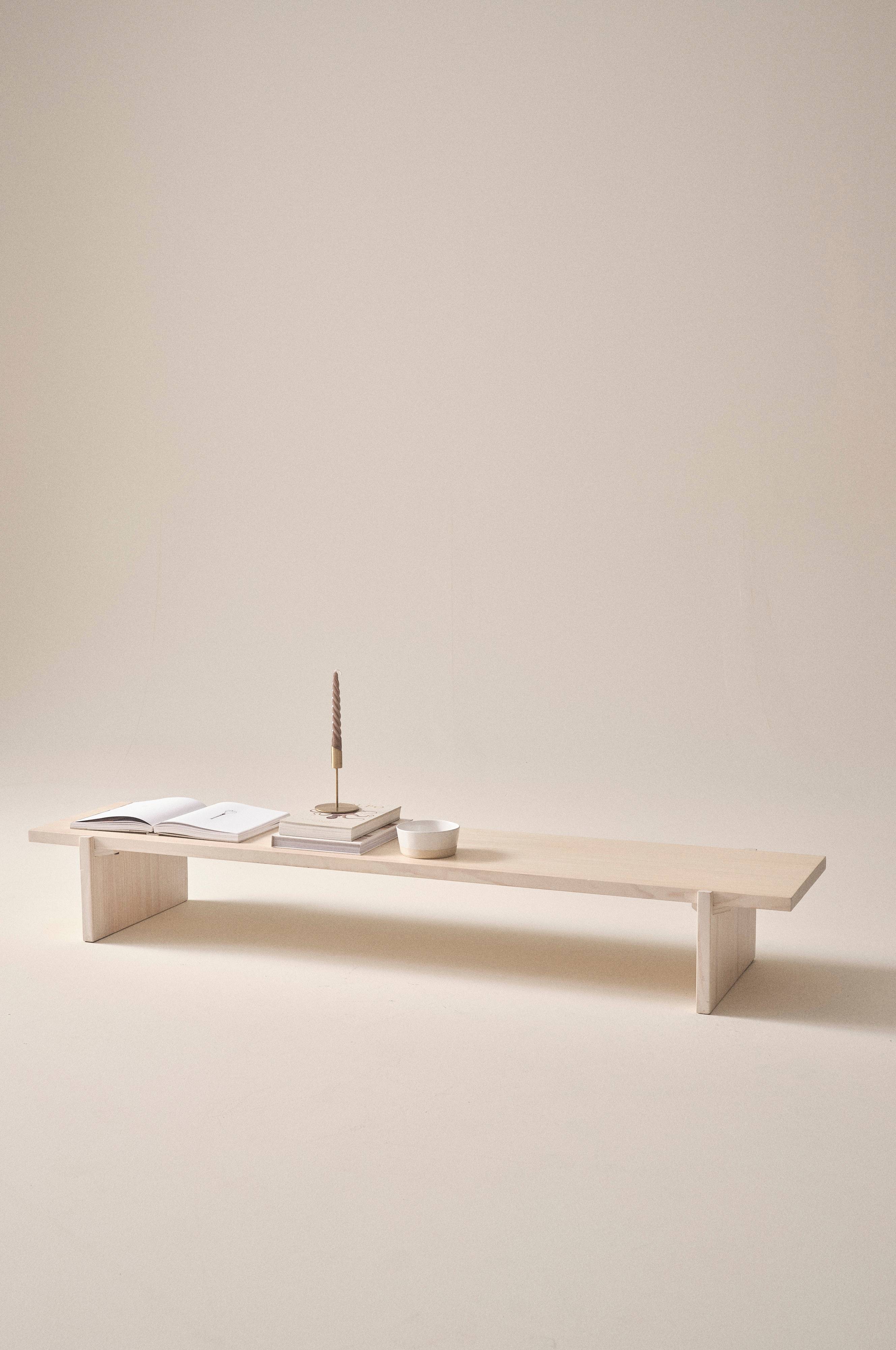 Rektangulært sofabord fremstillet af FSC-mærket fyrretræ. Det mørke bord har en sort glasur, der kan opfattes som mørkebrun, og det træfarvede er hvidpigmenteret. Designsproget i TOTTORI er rent, nordisk og nedbarberet. Bordet er velkonstrueret, og benet langs hver korte ende har et smukt møde med bordpladen, som giver bordet dets karakter. Træfornemmelsen er håndgribelig og særligt fremtrædende i den naturfarvede version, og det sorte bord har også denne fornemmelse. Den lange, smalle form kombineret med den lave højde gør bordet til noget helt særligt.