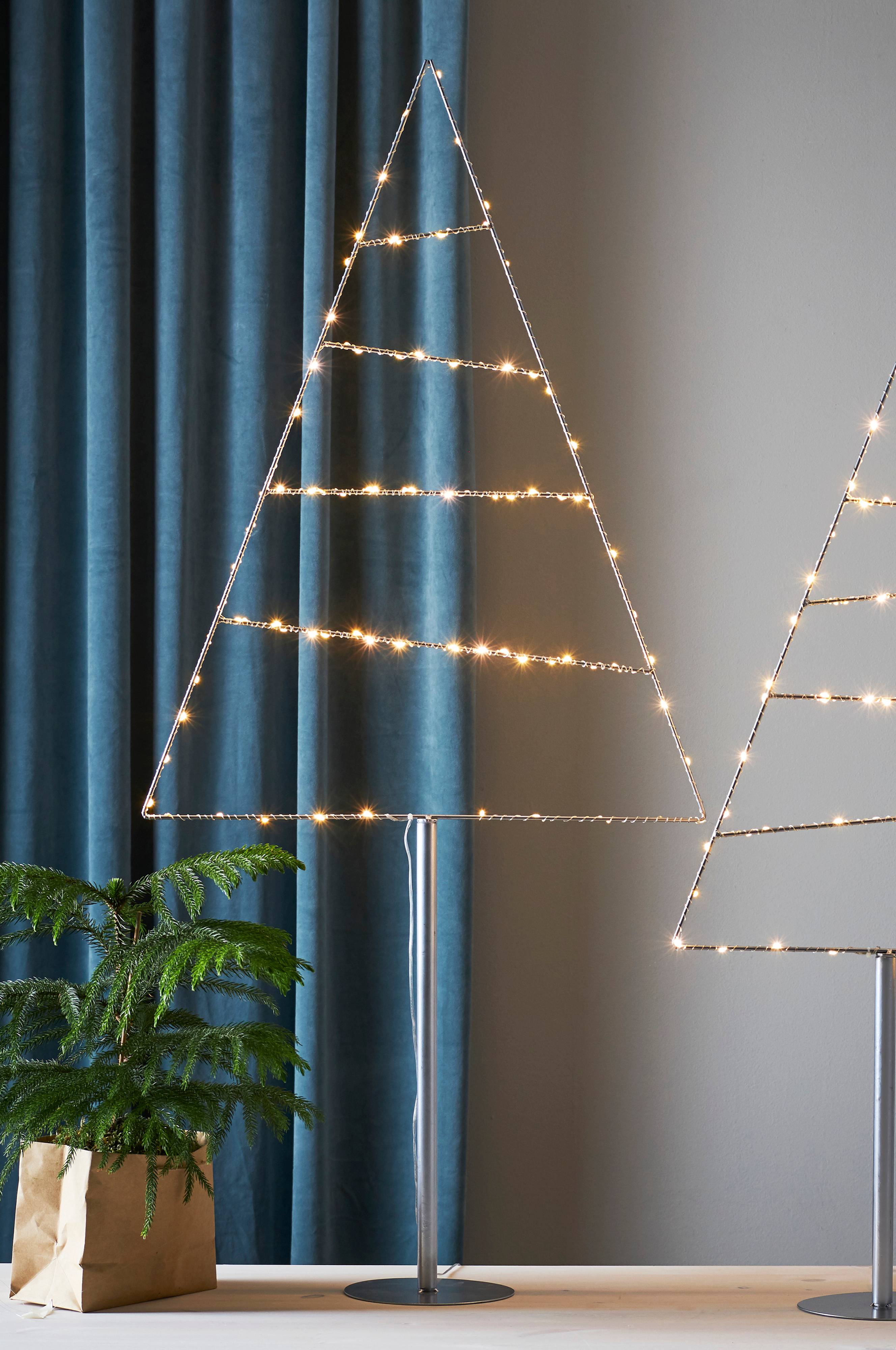 Stilren lysdekoration udformet som et grantræ til indendørs brug. Dekorationen har 85 LED-lys som skaber en skøn atmosfære i dit hjem. Nogle af LED-lysene har en svagt blinkende og gnistrende effekt. Transparent ledning, ledningslængde 3 m. Nogen montering kræves, monteringsvejledning medfølger.