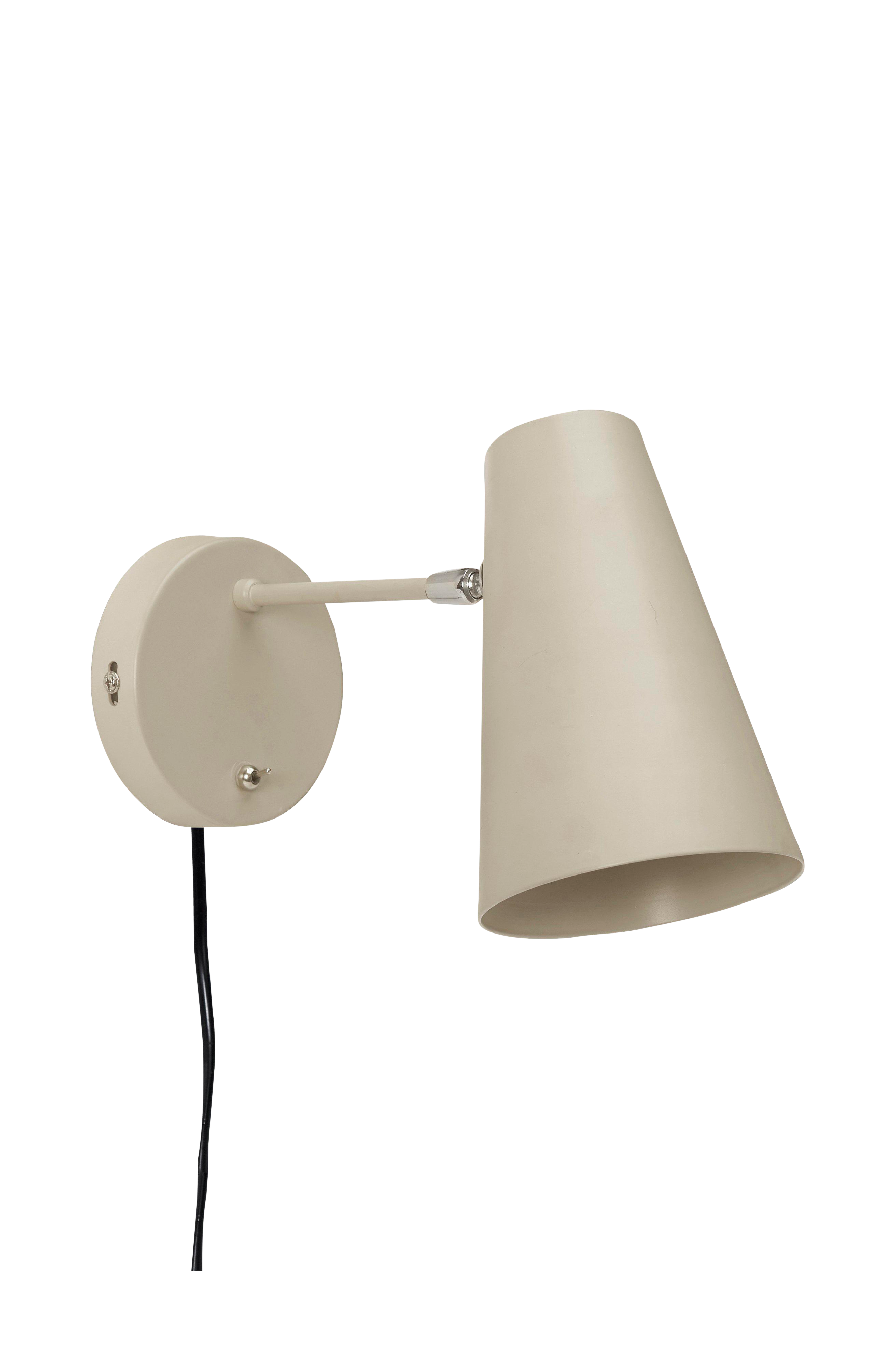 Væglampe Cornet i metal med justerbar skærm. Afbryder på vægpladen. 1,4 meter plastledning. Vægafstand ca. 27-35 cm. Skærmens diameter forneden 13 cm og højde 20 cm. En stilren form som aldrig går af mode. Pære medfølger ikke.