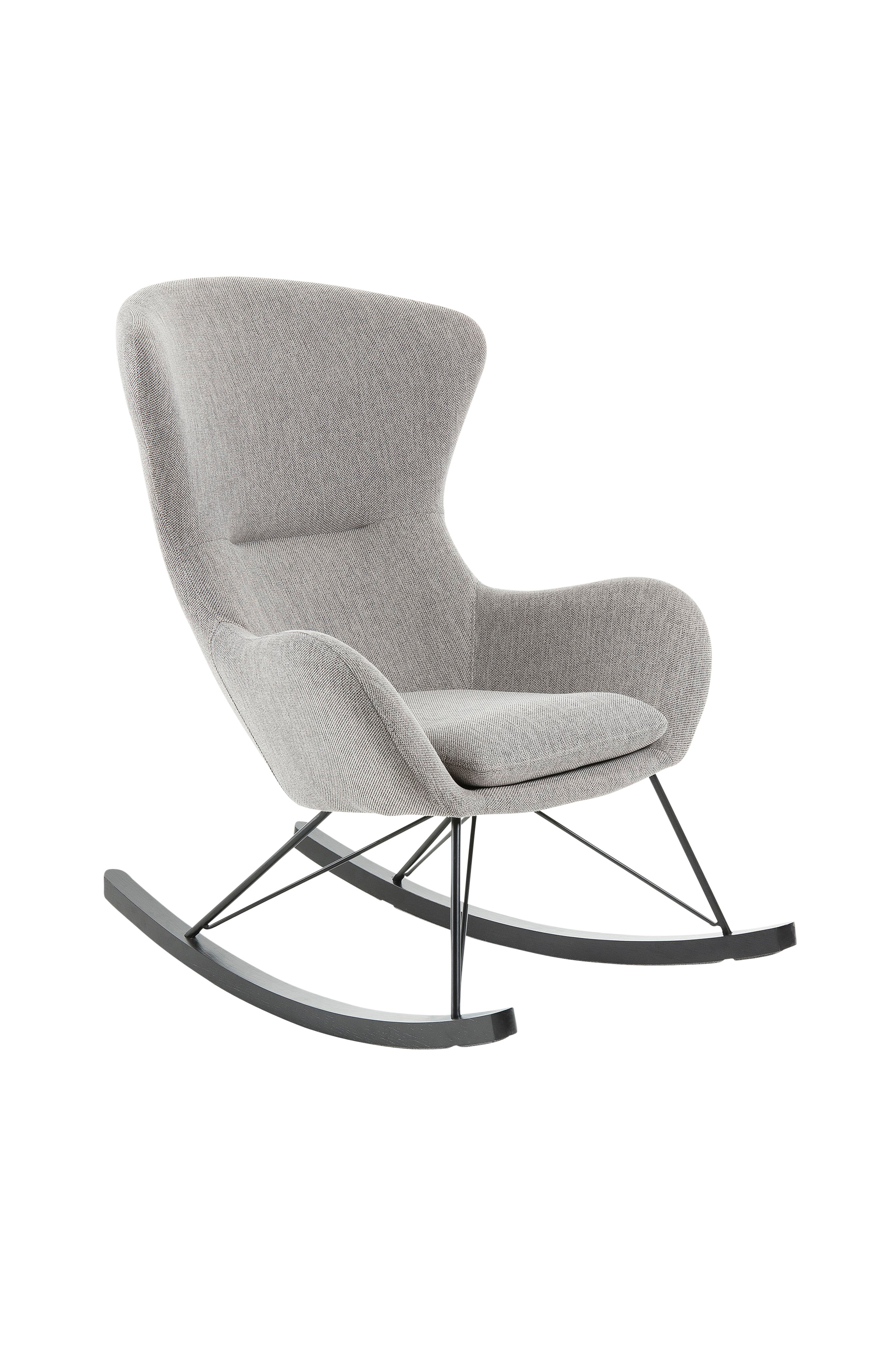 Gyngestol med stel af pulverlakeret stål og gænger af lakeret askefinér. Stolen har betræk i Chenille og behageligt skumfyld. Den stilrene form betyder at stolen passer ind i de fleste hjem og i mange forskellige rum.