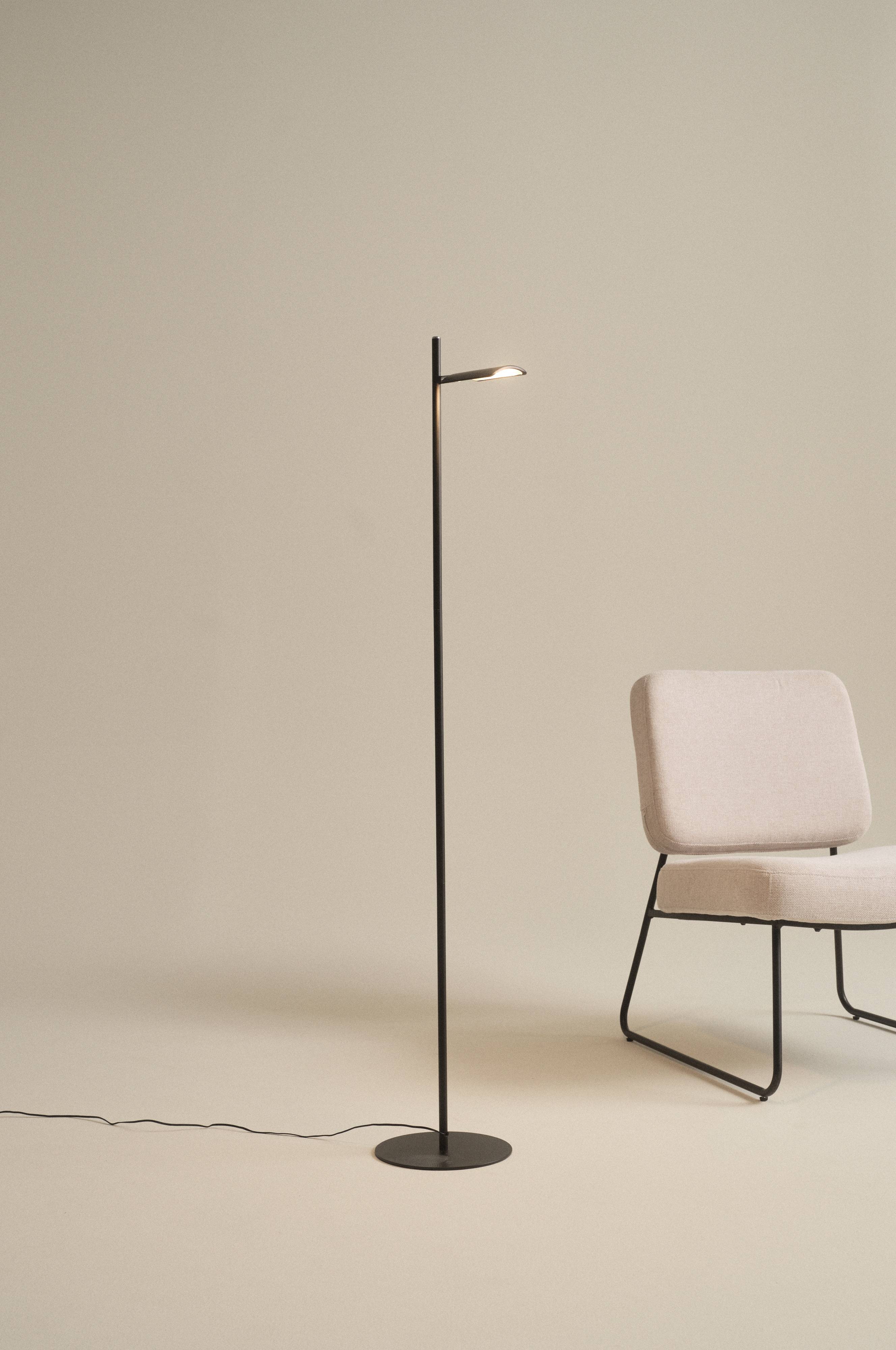 Gulvlampe af metal med integreret LED-lys. VENETA er en serie af lamper i en moderne, enkel og minimalistisk stil, som er nemme at placere takket være deres slanke form og diskrete design. Lampen kan dæmpes og strømafbryderen har touch-funktion. PVC-ledning.