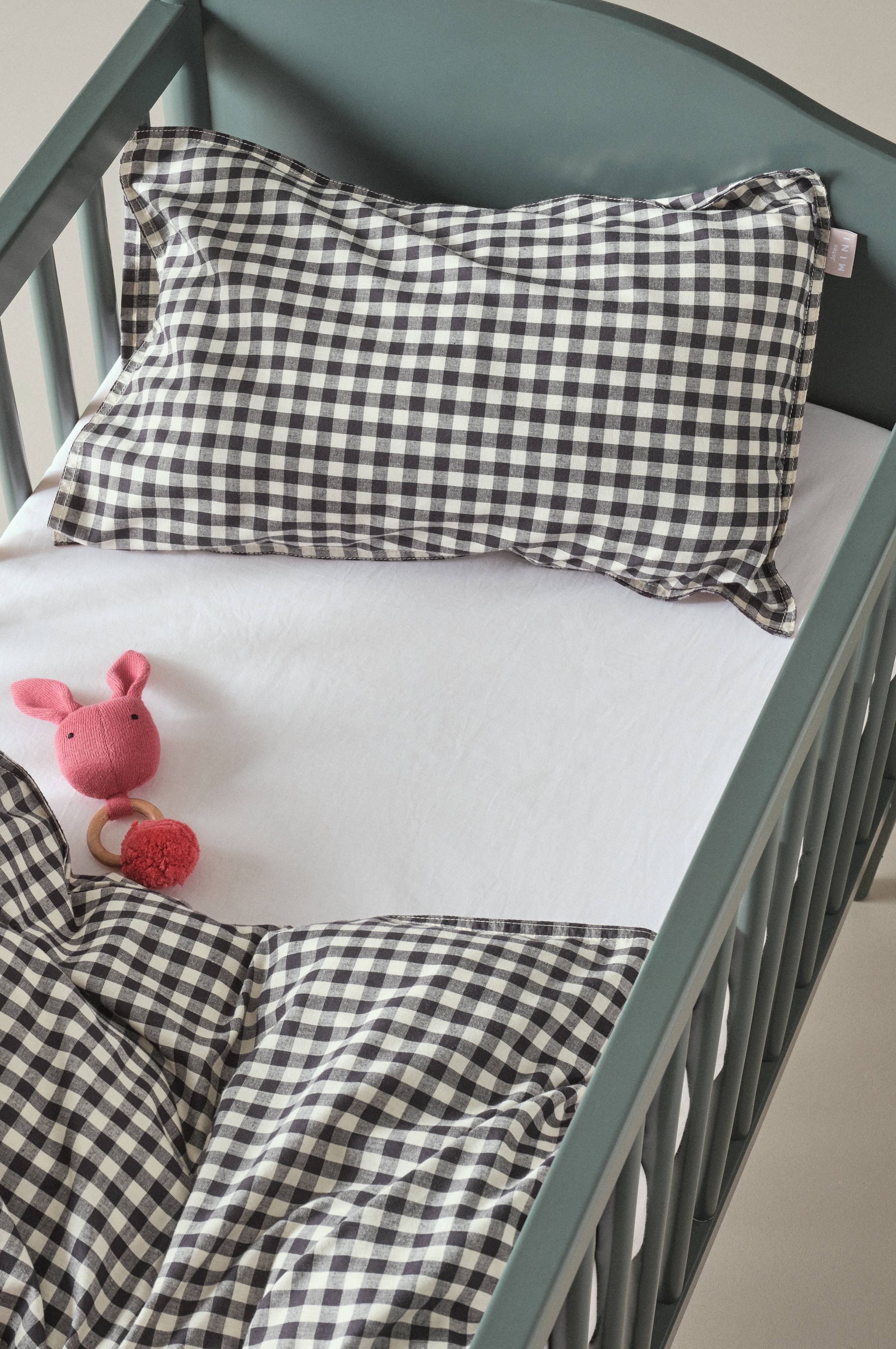 1-pak pudebetræk i skøn, økologisk bomuldskvalitet. Stoffet er vasket for at få et blødere udtryk og bomuld føles kølig og skønt mod huden. De garnfarvede tern går i klassiske farver, lette at matche med andet. Pudebetrækket passer godt til mindre børn, perfekt i tremmesengen. Trådtæthed på 118 tc. (Trådtætheden angiver antal tråde, Thread Counts, pr. kvadrattomme i et stof. Jo højere trådtæthed desto højere kvalitet.)