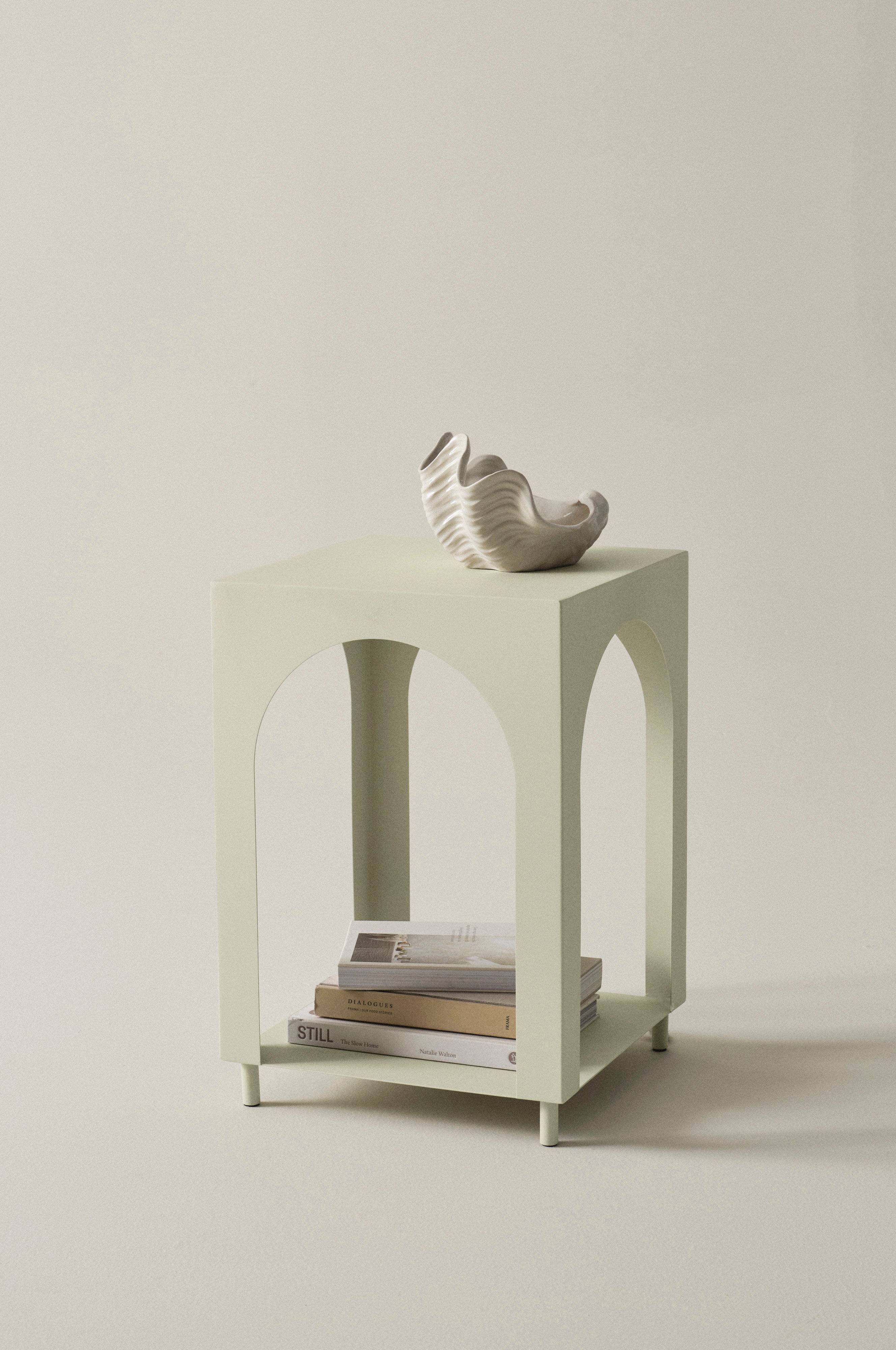 VESTA er et spændende sidebord lavet af jern med en pulverlakeret overflade med lidt struktur. Bordet har små, fleksible ben og en hylde nær gulvet, hvor du kan opbevare alt fra magasiner og bøger til fine dekorationer eller hvorfor ikke en cool lampe?