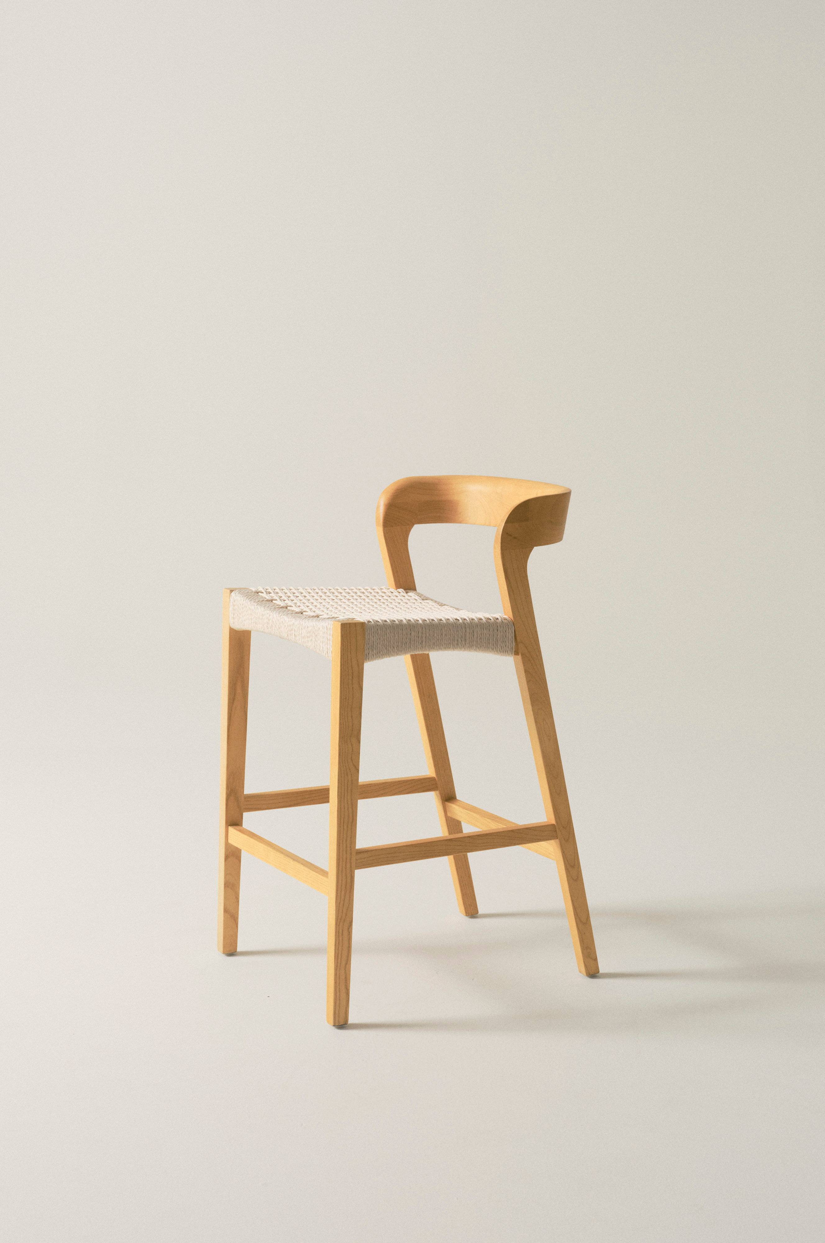 Barstol af elm med sæde af papirsnore. VIKDALEN er en behagelig stol i skandinavisk stil, hvor robust elmetræ kombineret med sædet af papirsnore giver en flot kontrast og god siddekomfort. Stellet af elm har en beskyttende, vandbaseret lak.