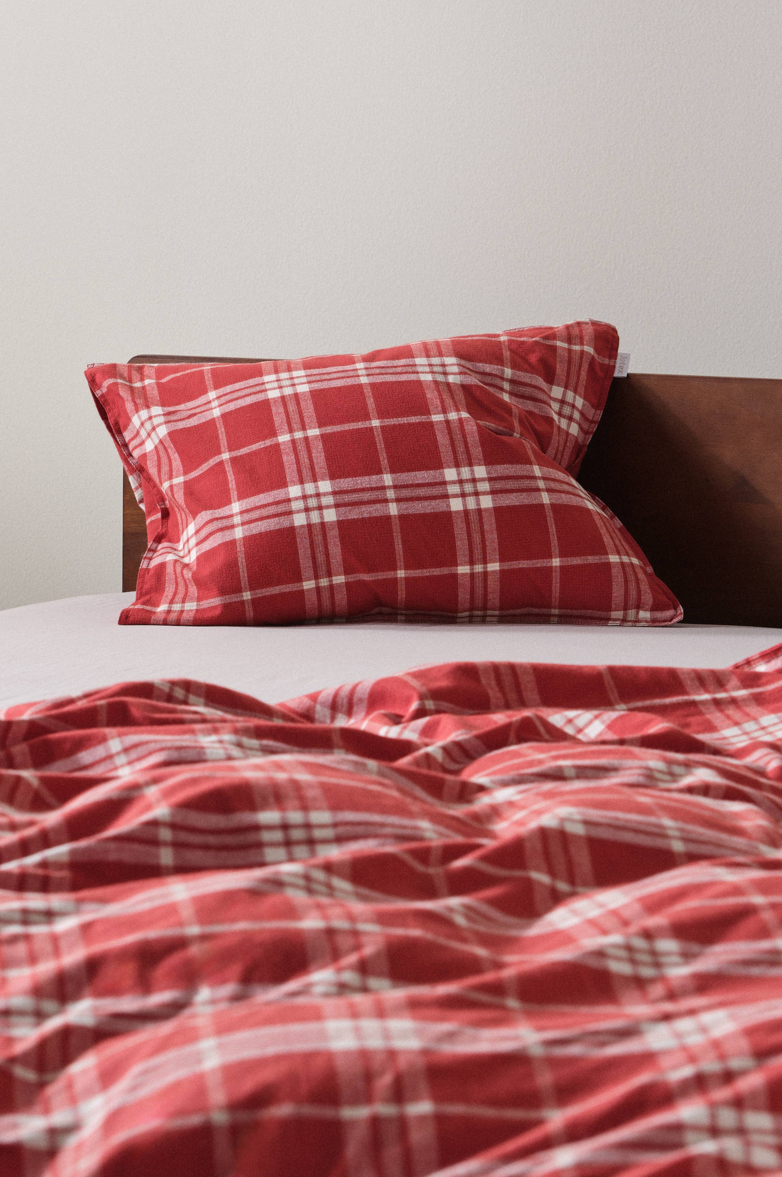 1-pak pudebetræk i blød bomuldsflonel med vævet ternet mønster. Ternet har klassisk charme og flonel er blødt mod huden og varmer skønt. Sengetøj i serien VILMA har dobbeltsøm rundt om. Stoffets gramvægt er 130 g/m². Trådtæthed på 104 tc. (Trådtætheden angiver antal tråde, Thread Count, pr. kvadrattomme i et stof. Jo højere trådtæthed desto højere kvalitet.)