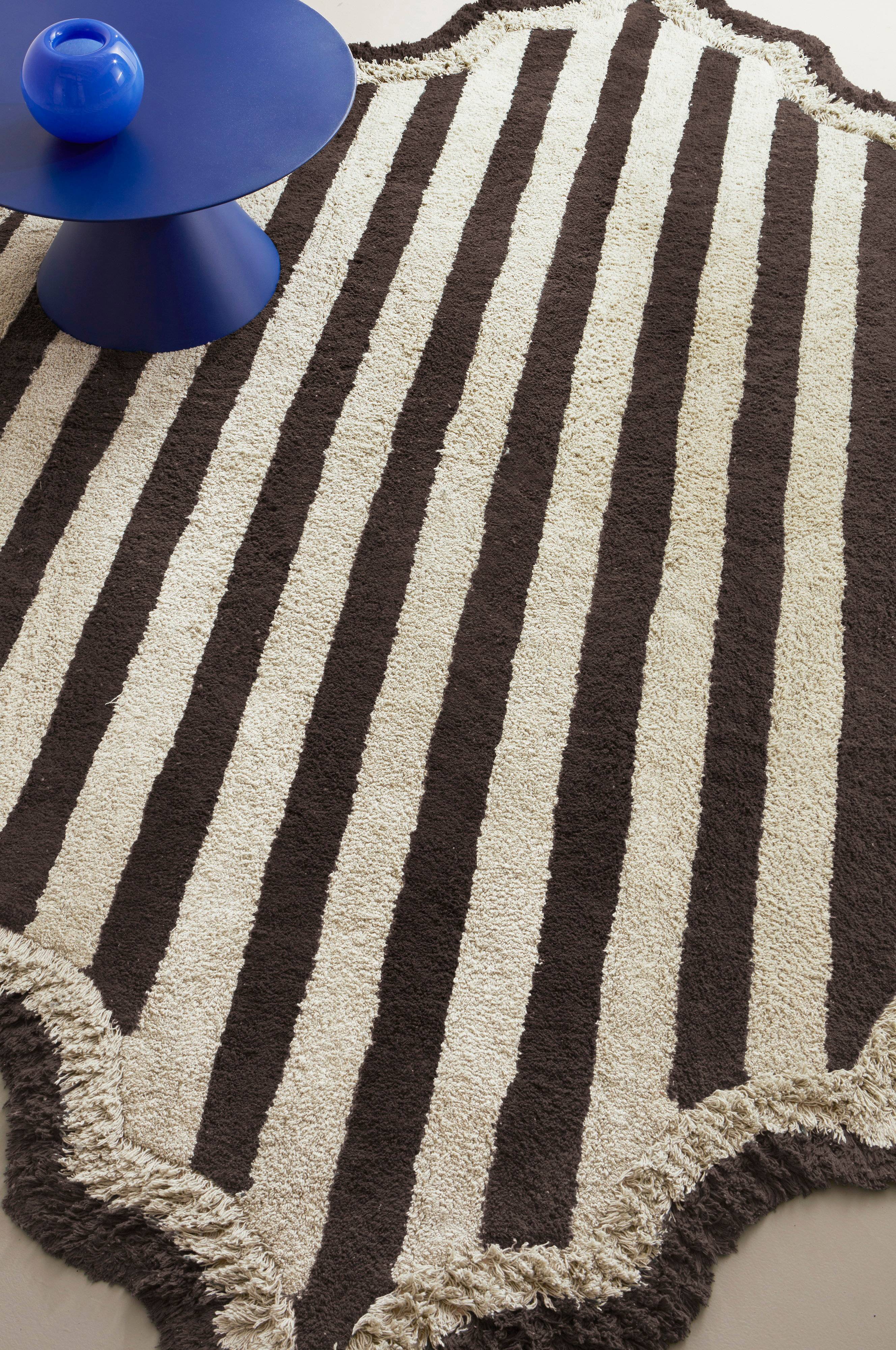 Bomuldstæppet VIOLETA tilføjer charme til ethvert rum. Den bløde, tuftede tekstur, det stribede mønster og den særlige form giver en livlig fornemmelse. Perfekt til soveværelser og stuer. Skab en hyggelig og stilfuld atmosfære uden besvær.