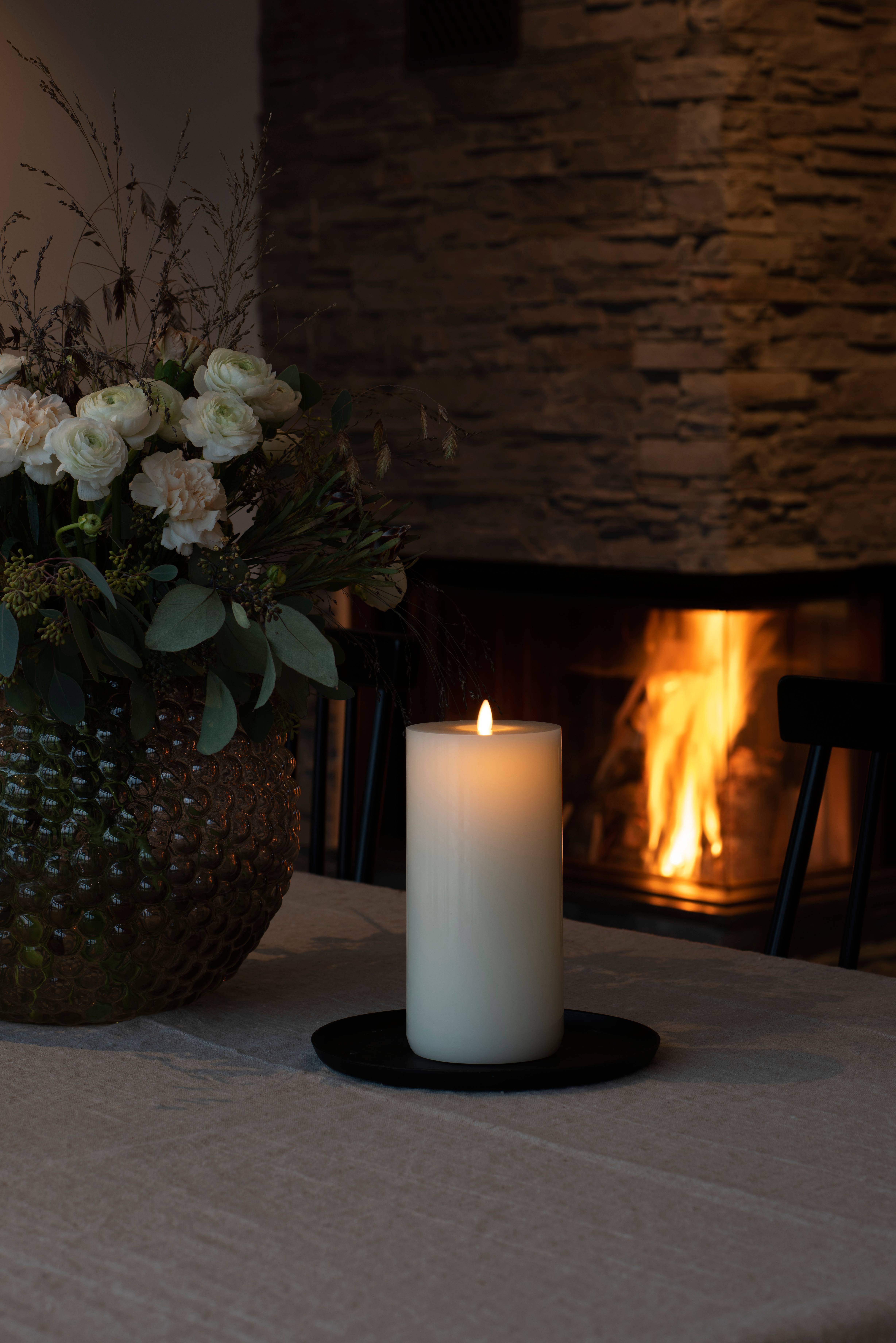 LED-vokslyset skaber en varm stemning med sin realistiske bevægelige flamme og beroligende duft af vanilje og honning. Praktisk udblæsningsfunktion eller 'touch on top' for nem betjening. Batteridrevet med indbygget timer til effektiv styring af lyset.
