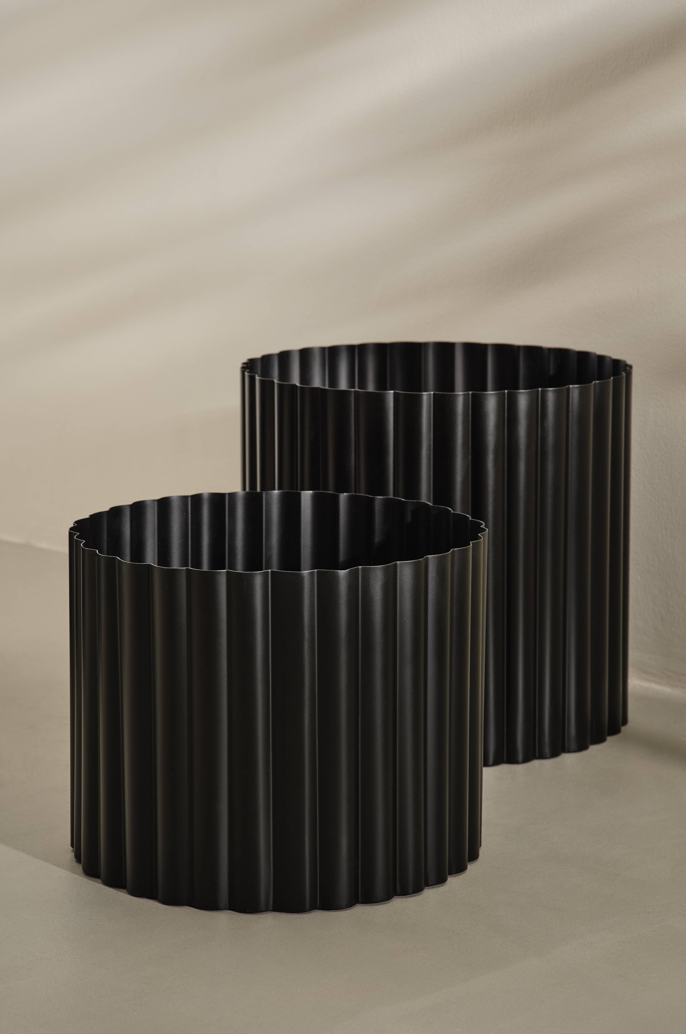 WILL udendørs krukkesæt består af to elegant designede krukker, der er perfekte til haven og udendørsarealer. Denne duo er fremstillet af jern med en pulverlakeret finish og har et fængslende riflet design. De forskellige størrelser giver alsidighed, hvilket gør dem ideelle til at fremvise dine yndlingsplanter og samtidig give din indretning et moderne præg.