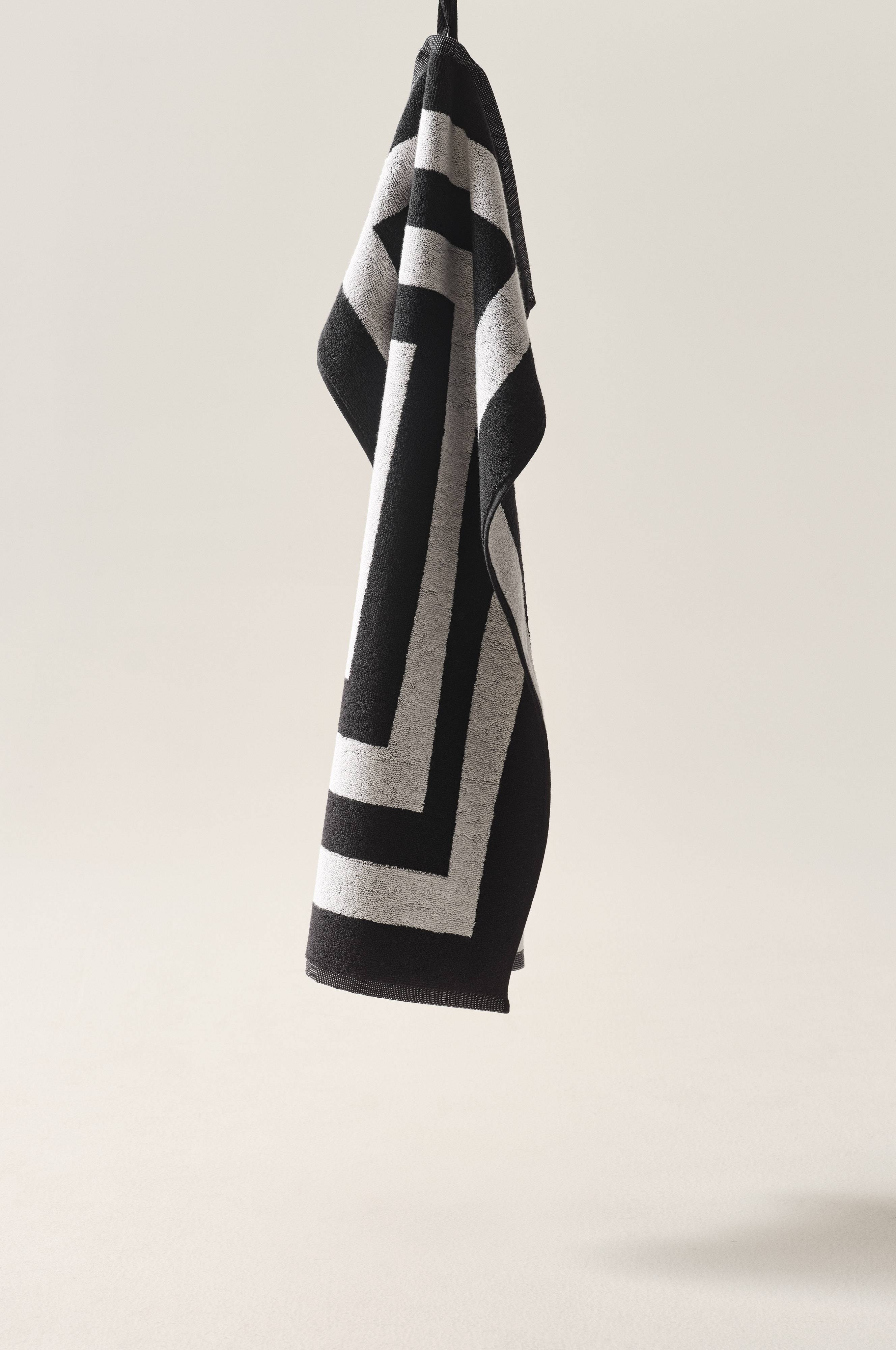 WILLIAM frottéhåndklæde giver din badeværelsesindretning et luksuriøst løft, vævet af dobbeltgarn, der giver en blød og hyggelig fornemmelse. Disse håndklæder har et unikt kvadratisk mønster, der skaber en stribet effekt, som fremhæves, når de hænges op.