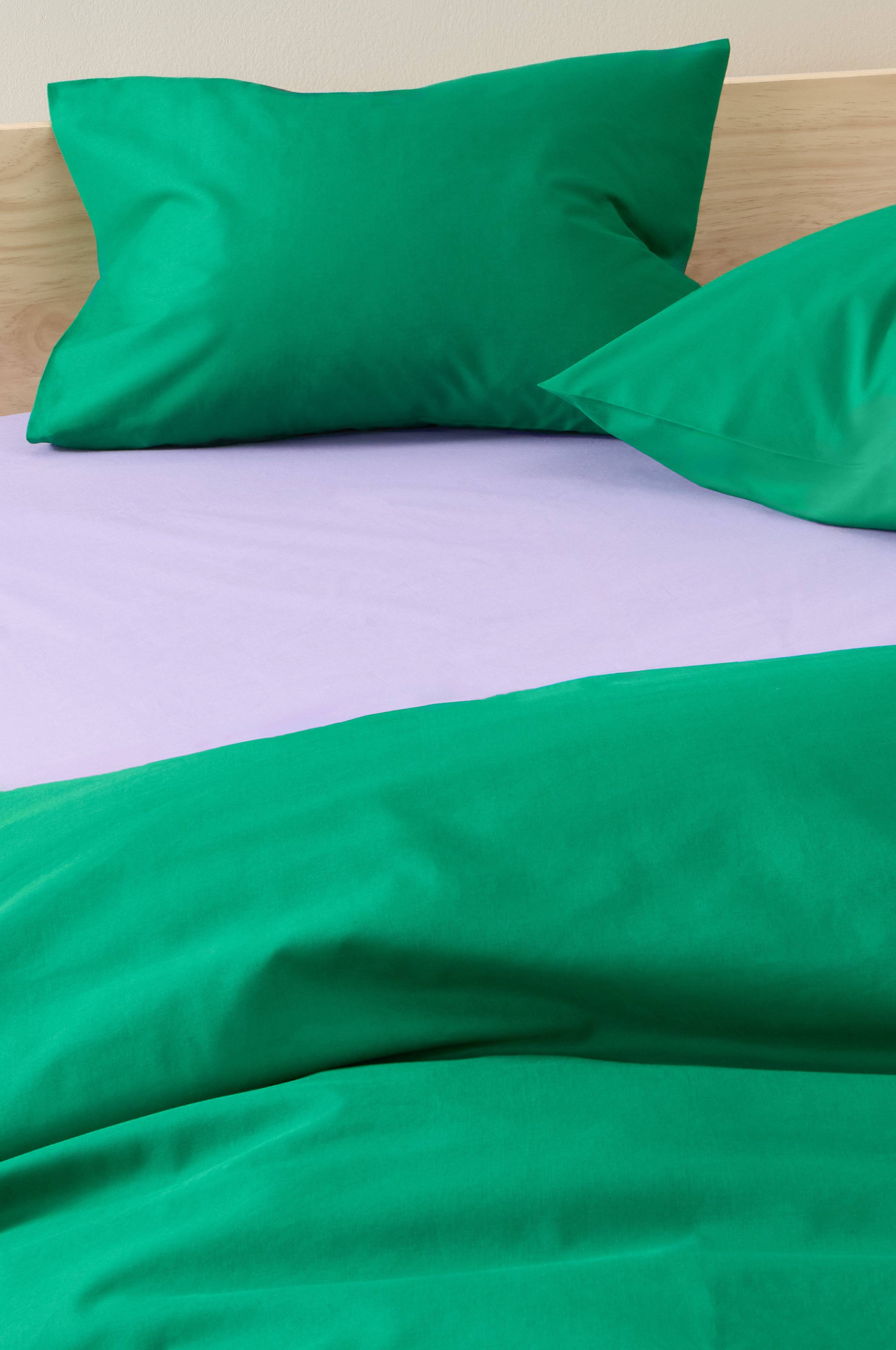 Ensfarvet faconsyet lagen i vidunderlig percale af økologisk bomuld med elastik i hjørnerne. Percale er et ekstra blødt og behageligt stof som er vævet med tynde, fine bomuldstråde. Den elastiske kant gør at lagenet sidder godt på madrassen. Trådtæthed på 200 tc. (Trådtætheden angiver antal tråde, thread counts, pr. kvadrattomme i et stof. Jo højere trådtæthed desto højere kvalitet.)