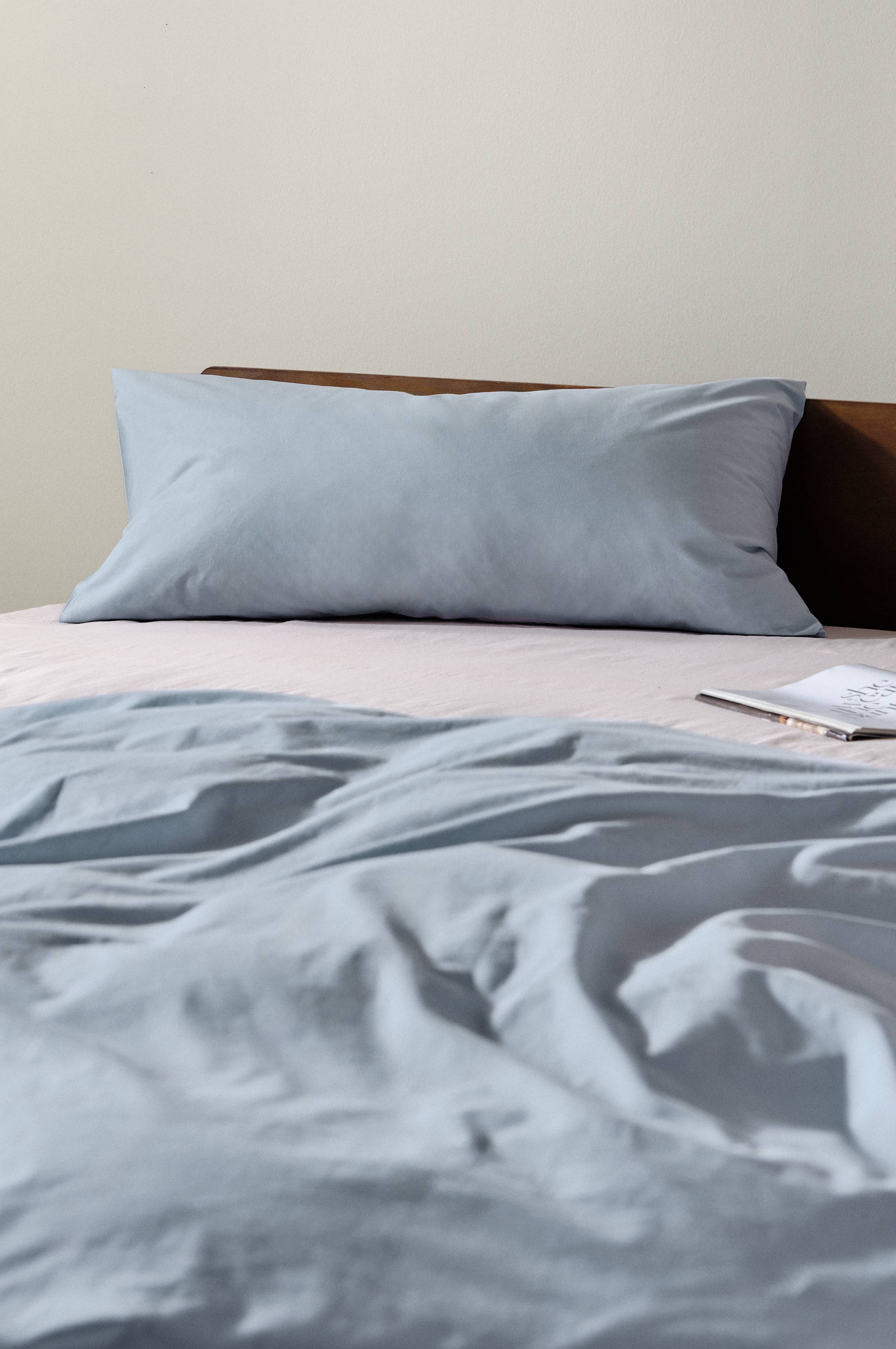 Ensfarvet pudebetræk i 1-pak i vidunderlig percale af økologisk bomuld. Percale er et ekstra blødt og behageligt stof som er vævet med tynde, fine bomuldstråde. Trådtæthed på 200 tc. (Trådtætheden angiver antal tråde, thread counts, pr. kvadrattomme i et stof. Jo højere trådtæthed desto højere kvalitet.)