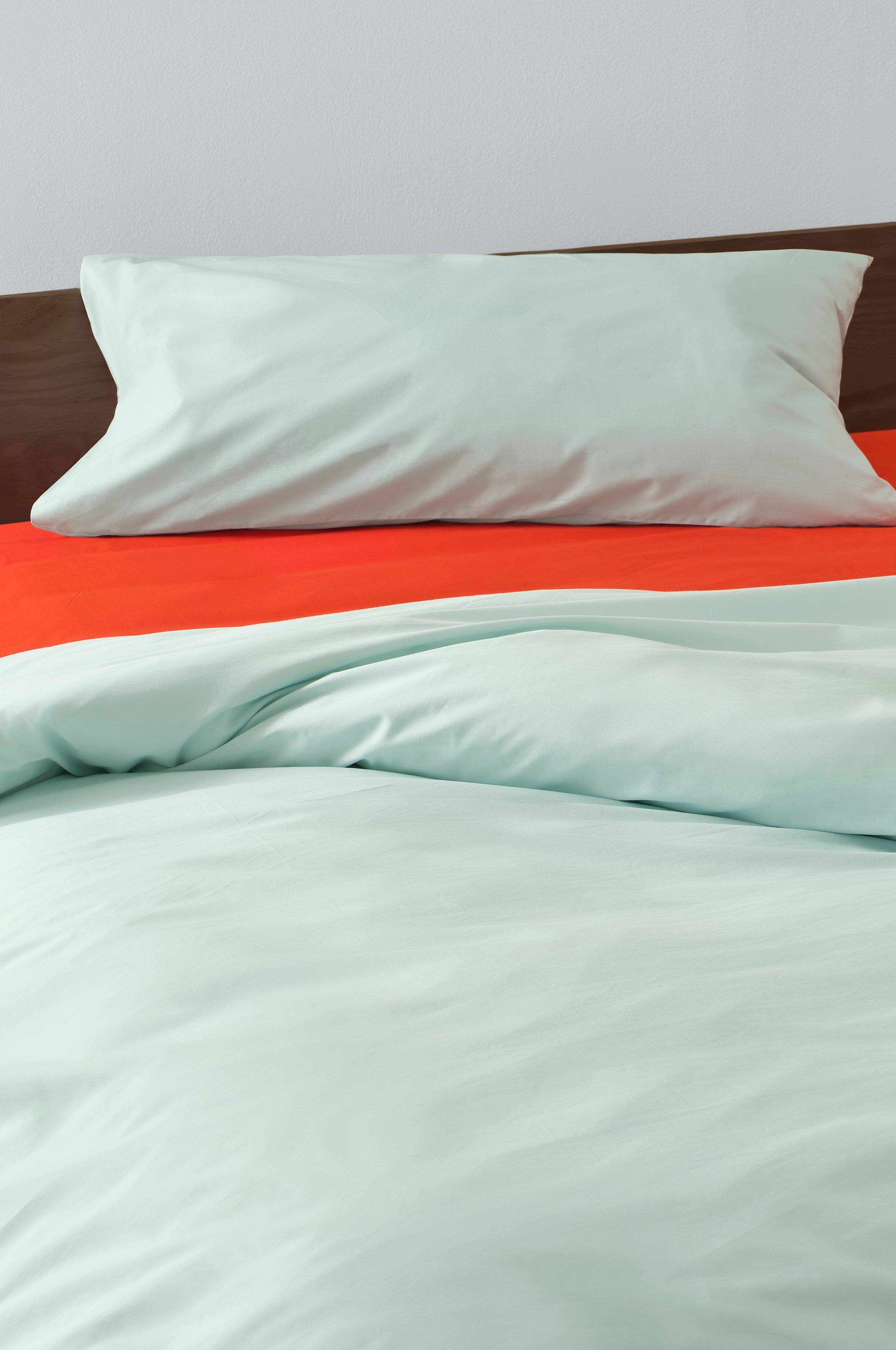 Ensfarvet pudebetræk i 1-pak i vidunderlig percale af økologisk bomuld. Percale er et ekstra blødt og behageligt stof som er vævet med tynde, fine bomuldstråde. Trådtæthed på 200 tc. (Trådtætheden angiver antal tråde, thread counts, pr. kvadrattomme i et stof. Jo højere trådtæthed desto højere kvalitet.)