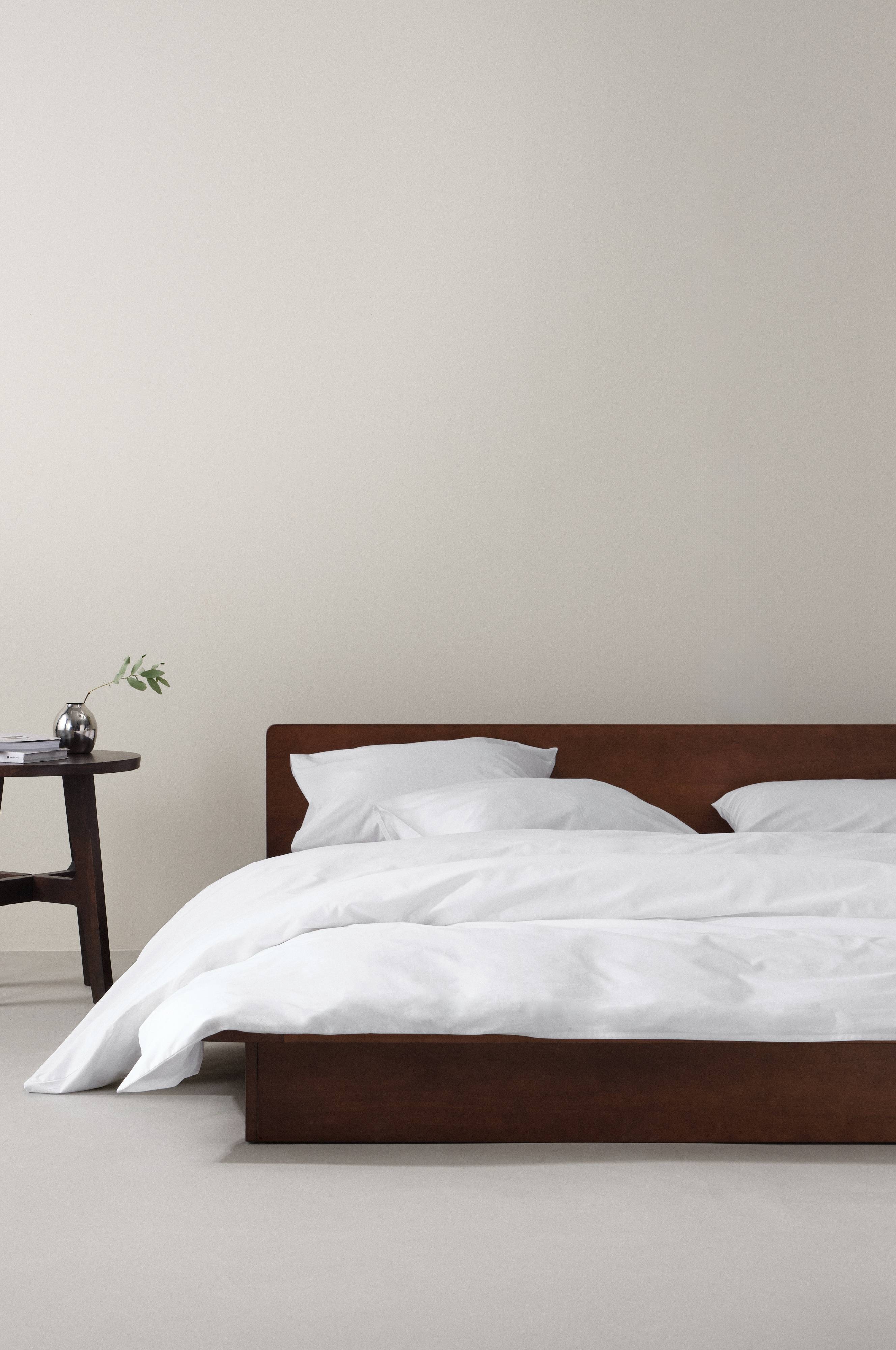 Enkeltfarvet tredelt dynebetræk, et ekstra bredt dynebetræk og to pudebetræk i lækker økologisk bomuldspercale. Percale er et ekstra blødt og behageligt stof, der er vævet med tynde, fine bomuldstråde.