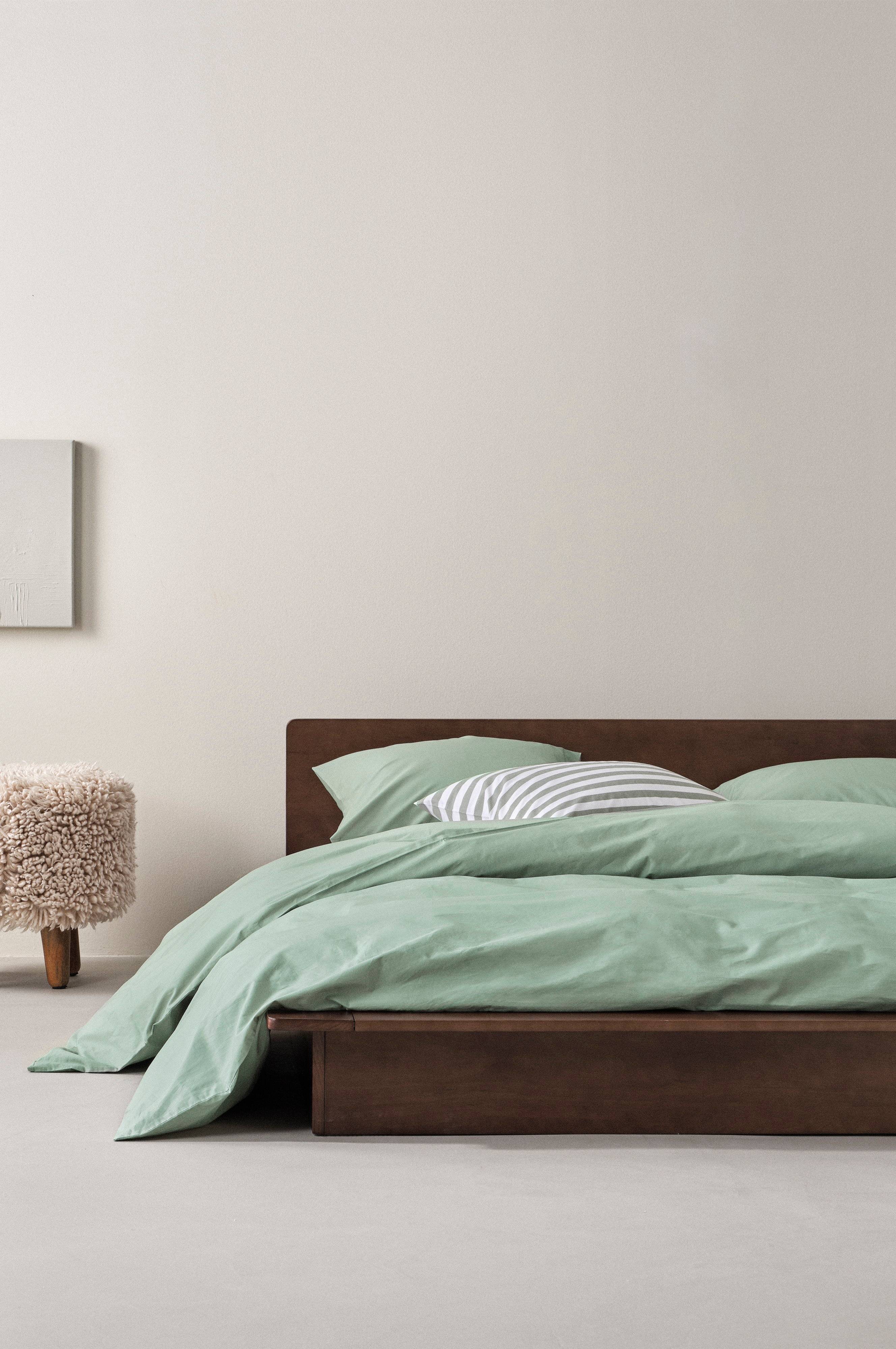 Enkeltfarvet tredelt dynebetræk, et ekstra bredt dynebetræk og to pudebetræk i lækker økologisk bomuldspercale. Percale er et ekstra blødt og behageligt stof, der er vævet med tynde, fine bomuldstråde.