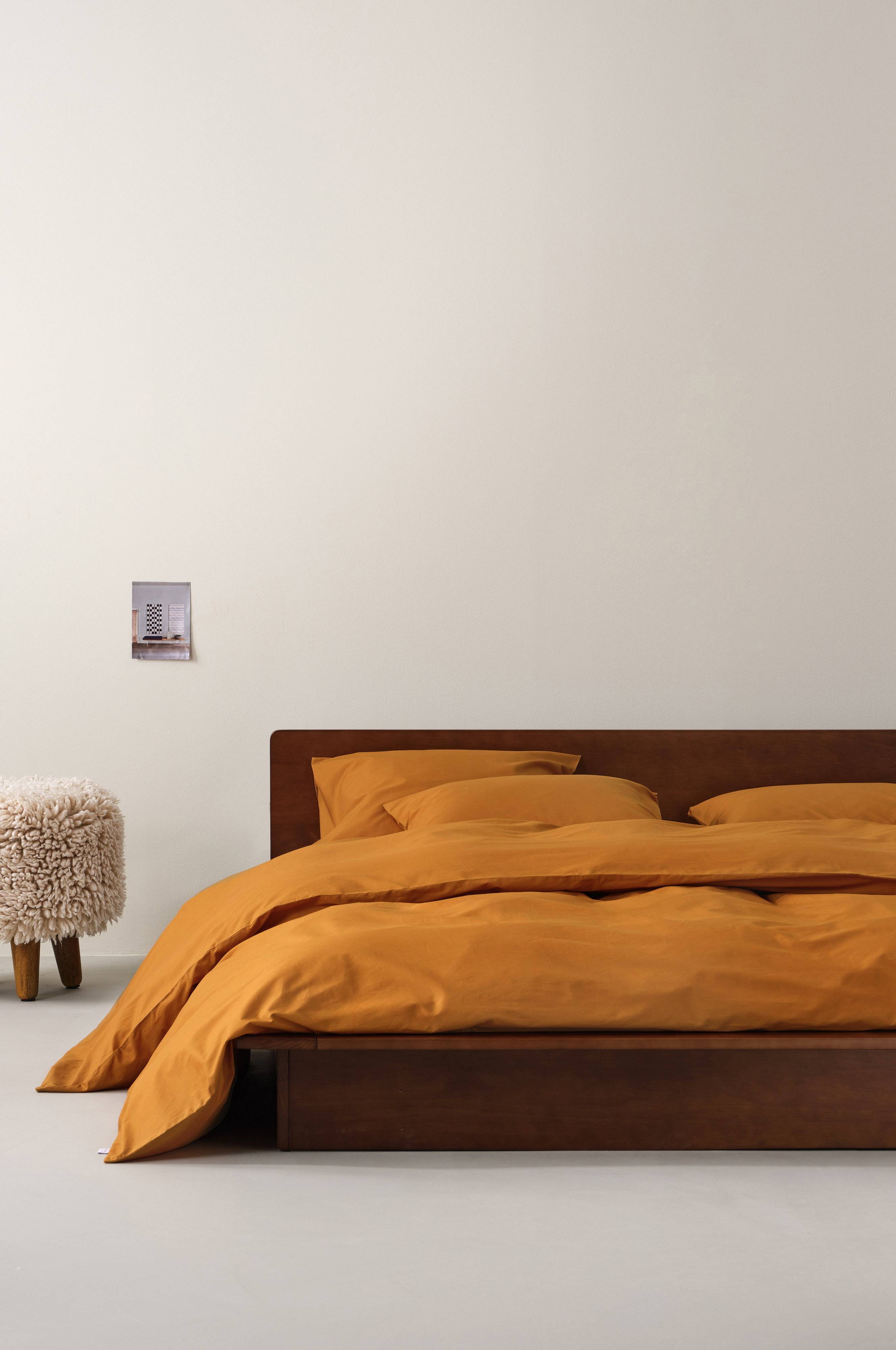 Enkeltfarvet tredelt dynebetræk, et ekstra bredt dynebetræk og to pudebetræk i lækker økologisk bomuldspercale. Percale er et ekstra blødt og behageligt stof, der er vævet med tynde, fine bomuldstråde.