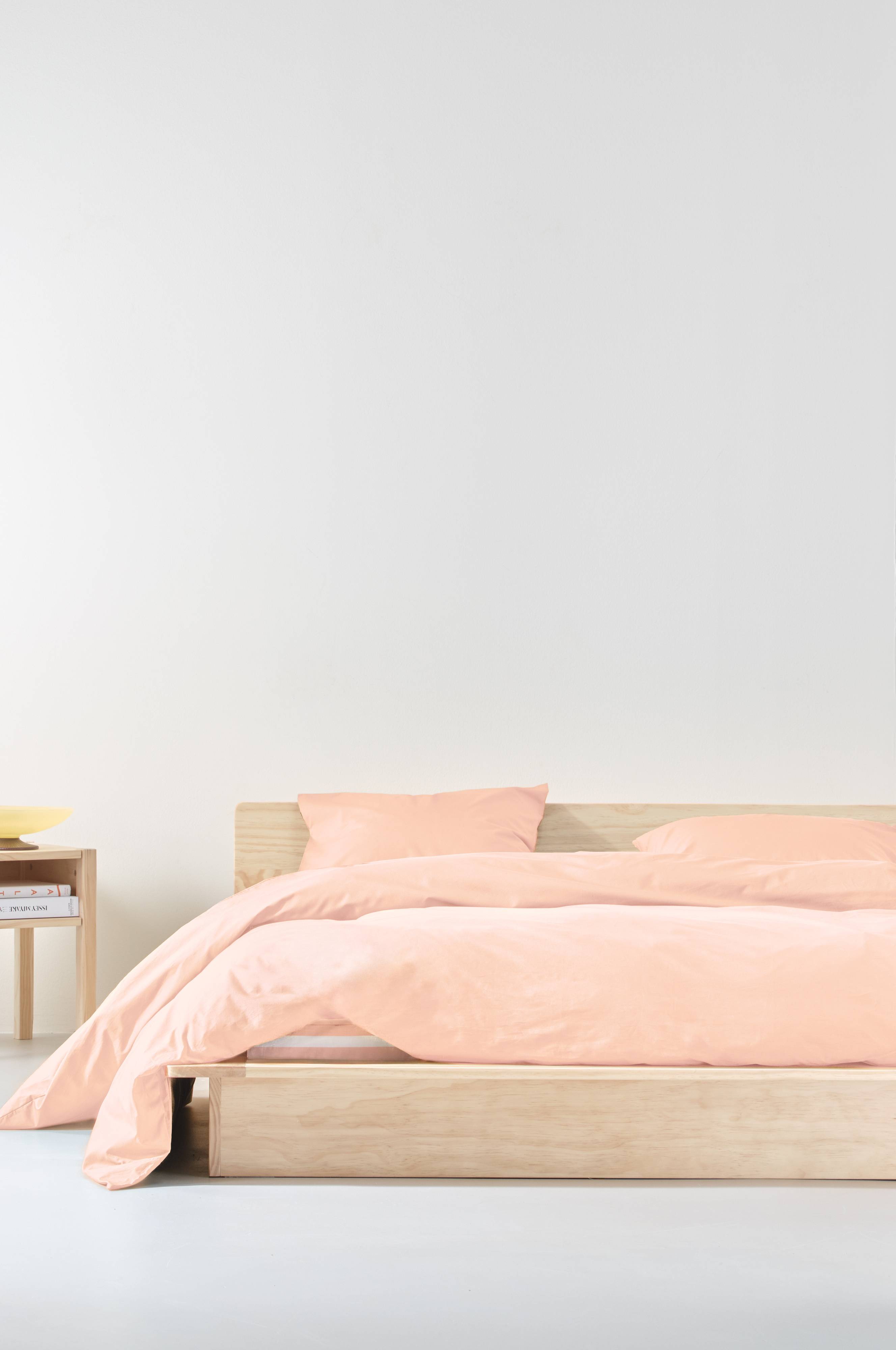 Enkeltfarvet tredelt dynebetræk, et ekstra bredt dynebetræk og to pudebetræk i lækker økologisk bomuldspercale. Percale er et ekstra blødt og behageligt stof, der er vævet med tynde, fine bomuldstråde.