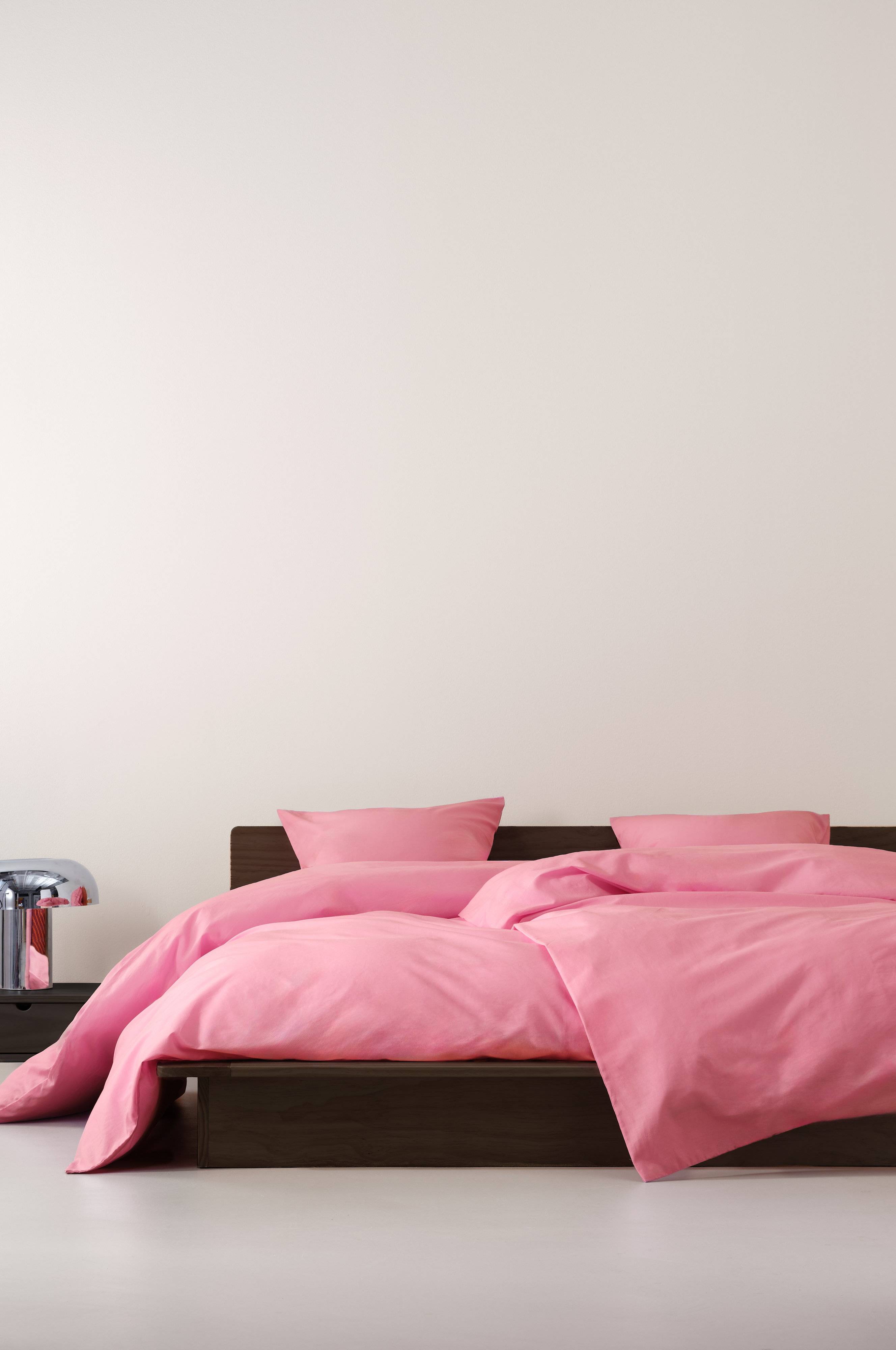 Ensfarvet sengesæt i to dele, et dynebetræk og et pudebetræk i vidunderlig percale af økologisk bomuld. Percale er et ekstra blødt og behageligt stof som er vævet med tynde, fine bomuldstråde. Åbning i de øverste hjørner på dynebetrækket, så det er nemt at trække dynebetrækket over dynen. Trådtæthed på 200 tc. (Trådtætheden angiver antal tråde, thread counts, pr. kvadrattomme i et stof. Jo højere trådtæthed desto højere kvalitet.)
