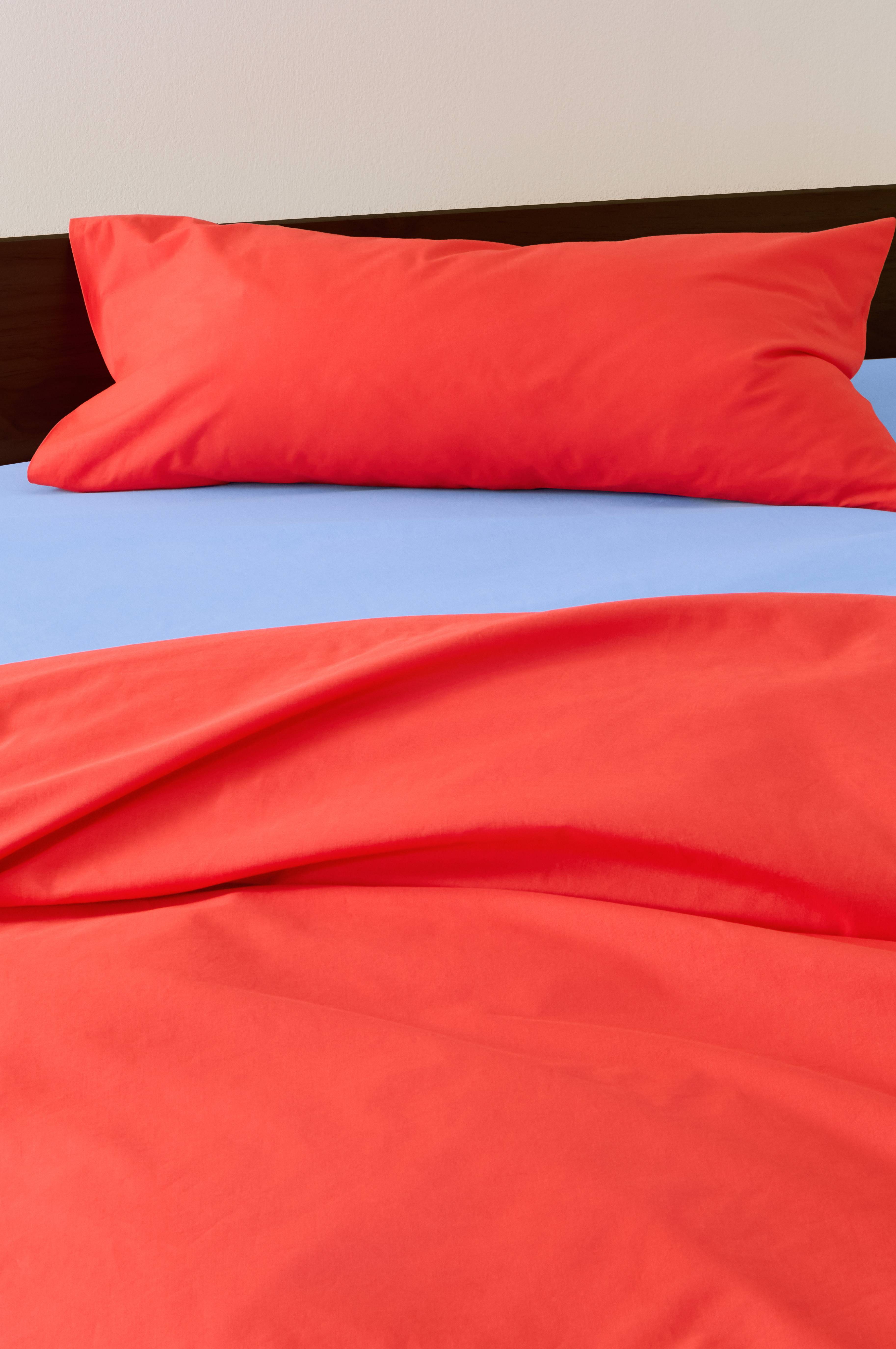 Ensfarvet pudebetræk i økologisk bomuld. Sengetøj i økologisk bomuld er luftigt, blødt og nemt at pleje. Perfekt sengelinned til unge og gamle, til familien på landet og til singlen i byen.