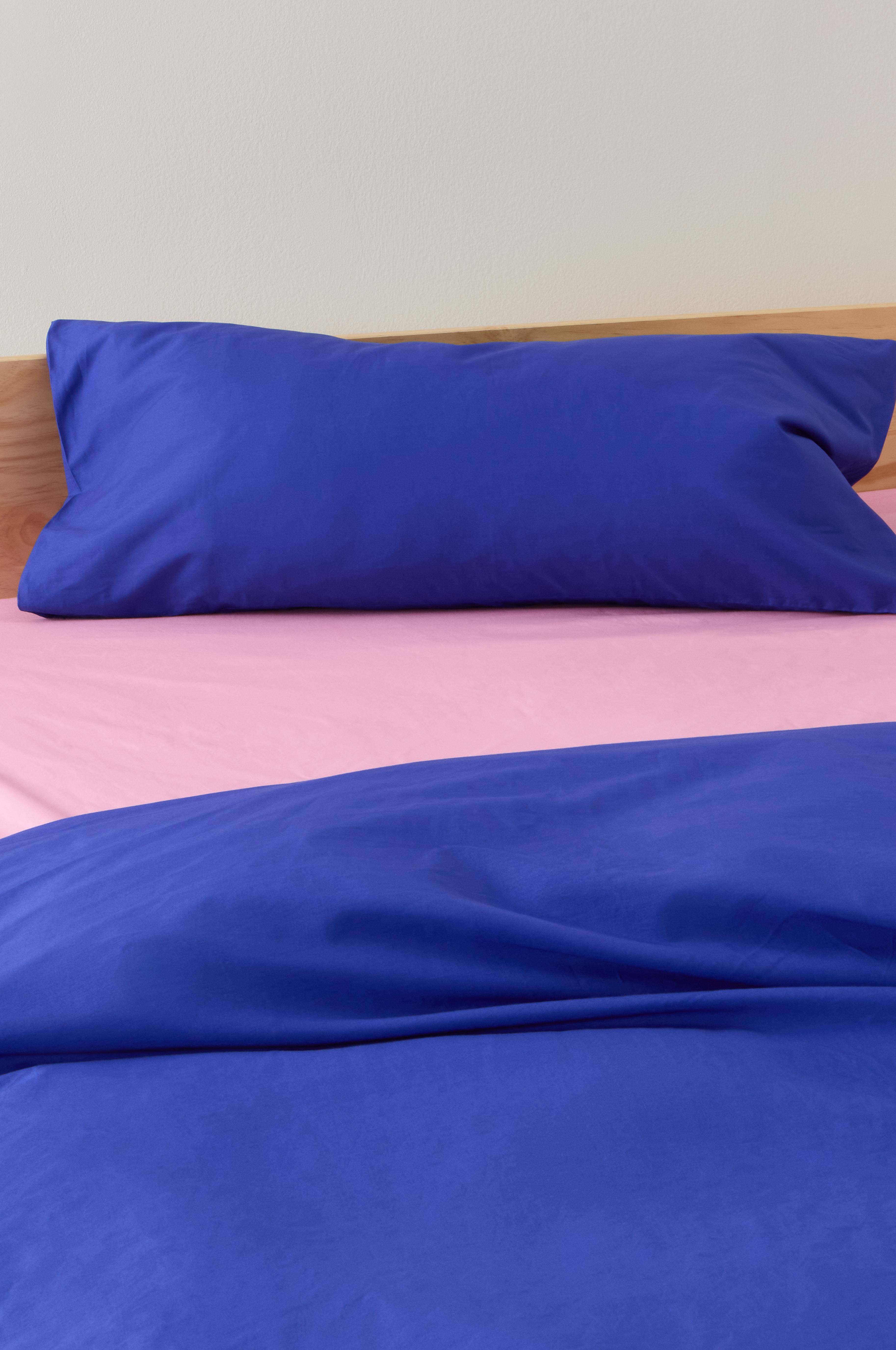 Ensfarvet pudebetræk i økologisk bomuld. Sengetøj i økologisk bomuld er luftigt, blødt og nemt at pleje. Perfekt sengelinned til unge og gamle, til familien på landet og til singlen i byen.