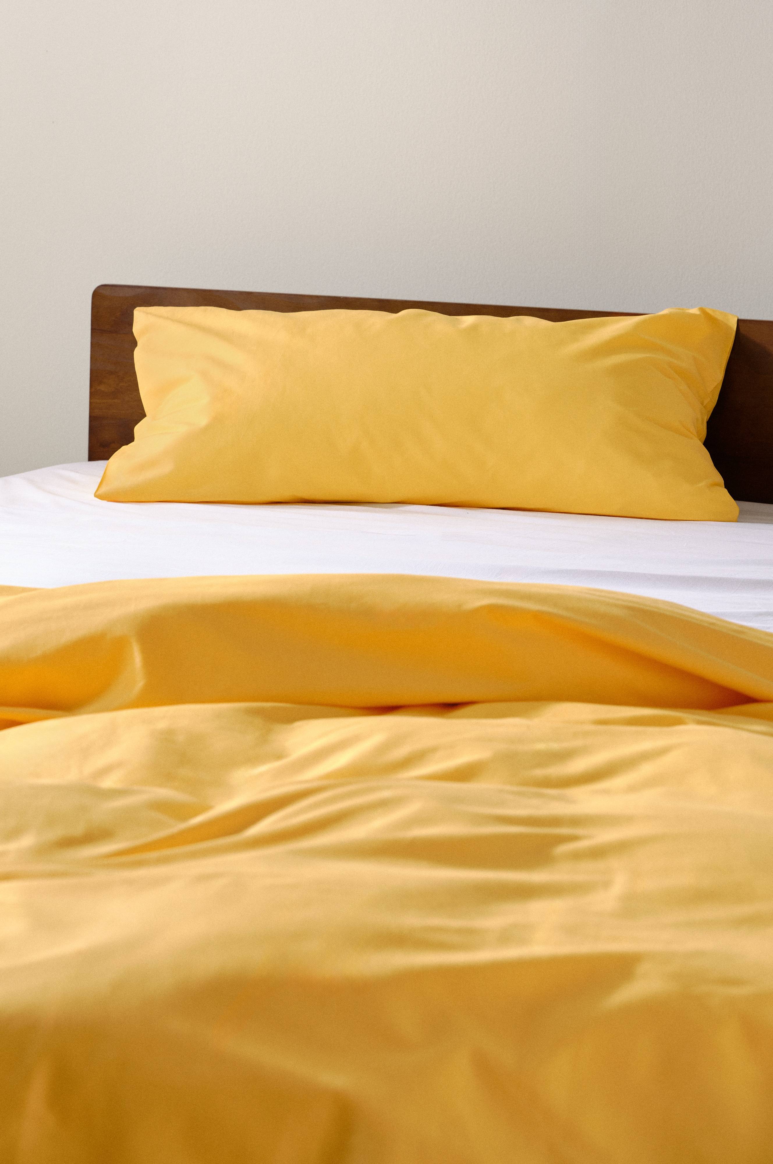 Ensfarvet pudebetræk i økologisk bomuld. Sengetøj i økologisk bomuld er luftigt, blødt og nemt at pleje. Perfekt sengelinned til unge og gamle, til familien på landet og til singlen i byen.